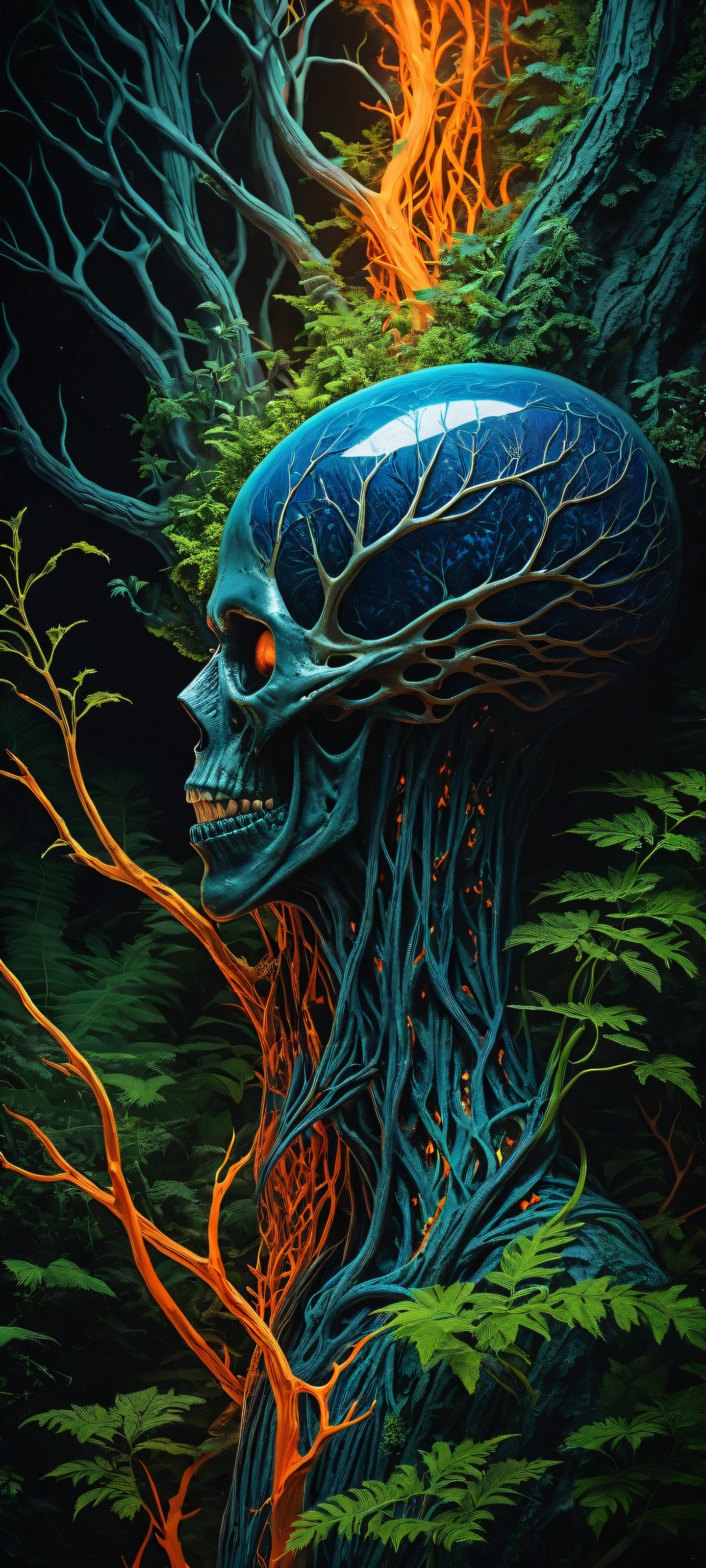 Perfectamente optimizado para tu iPhone, samsung galaxia, y pantallas de inicio de Android, this stunning digital art showcases a surreal landscape of plants and trees made of nerves and brain tissue. The top half is perfectly clean and empty, providing a smooth UI experience, while the bottom half features intricate micro-details and extreme depth of field blurred background. This masterpiece is sure to make your phone’s home screen look breathtaking.