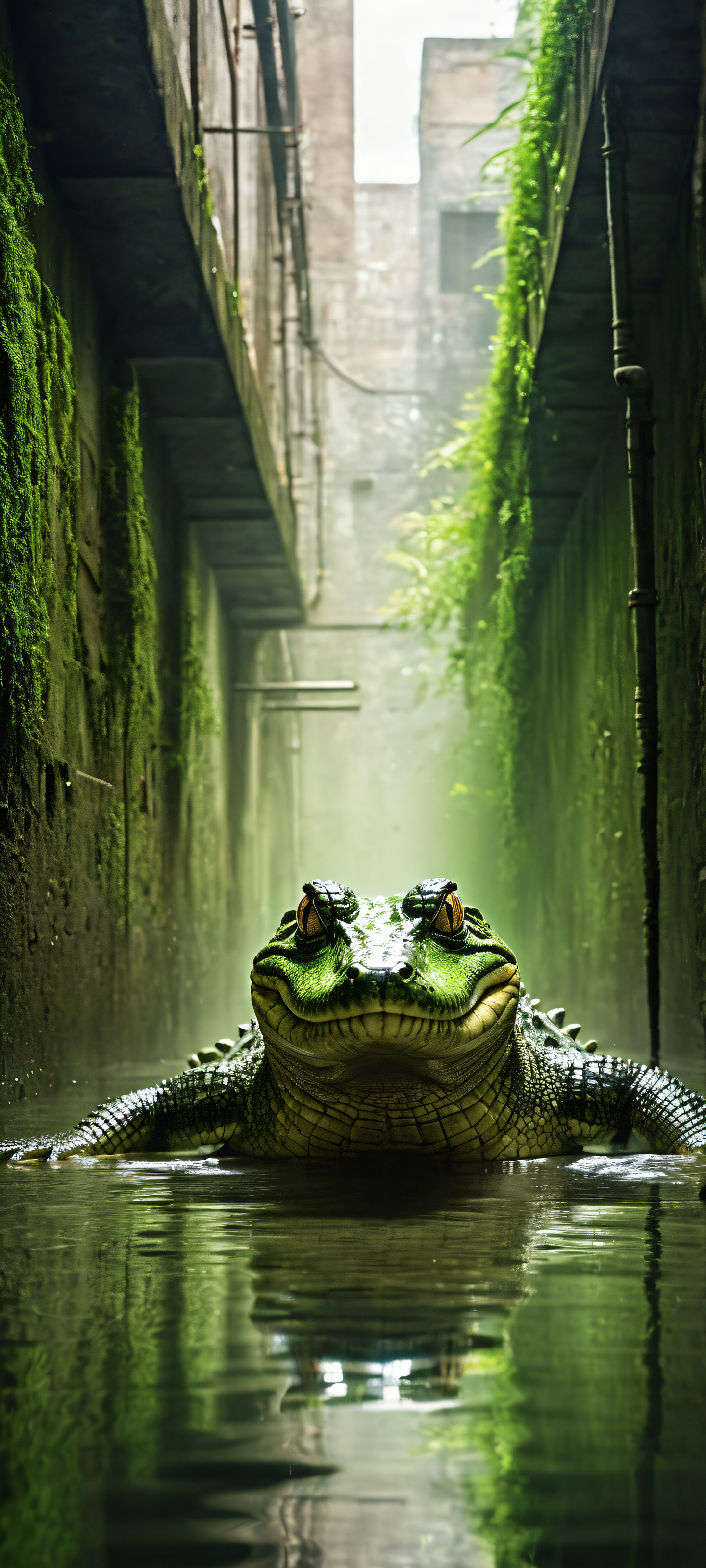 Elevate your iPhone or Samsung Galaxy home screen with this breathtakingly detailed digital art. Perfectly optimized for 2K QHD resolution and 9:20 aspect ratio, this masterpiece is designed to deliver stunning visual impact on any mobile device. The award-winning artwork features a heavily mutated human-alligator hybrid emerging from the murky waters of an urban sewer system, with intricate micro-details and a haunting ambiance that will leave you breathless.