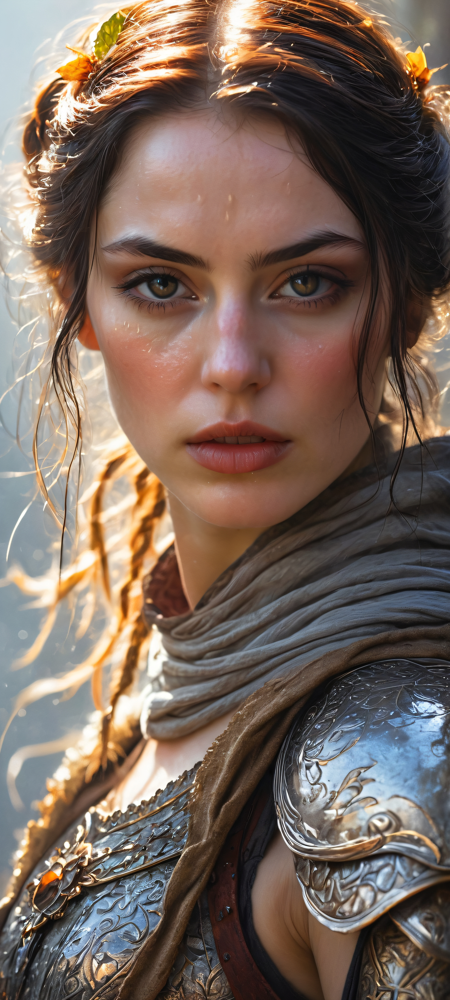 Bask in the mystique of this breathtaking digital art piece, perfectly optimized for your iPhone, samsung galaxia, or Android home screen. The heroine’s serene features and delicate folds of skin are illuminated by soft, rain-soaked light, inviting contemplation and wonder. A masterpiece of award-winning artistry, this 2K QHD resolution (9:20 aspect ratio) visual feast is a must-have for any fan of medieval mystique.