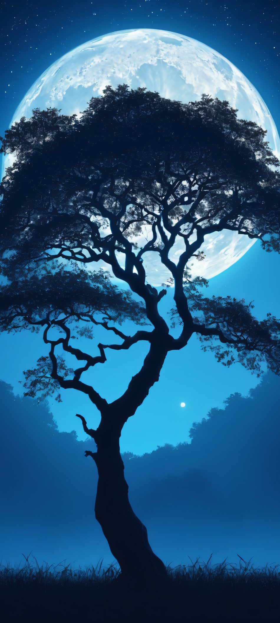 Transform your phone’s home screen with this breathtaking 8K resolution masterpiece. Featuring a stunning tree silhouette against a deep blue night sky, this surreal masterpiece is designed to mesmerize on any iPhone, Samsung Galaxy, or Android device.