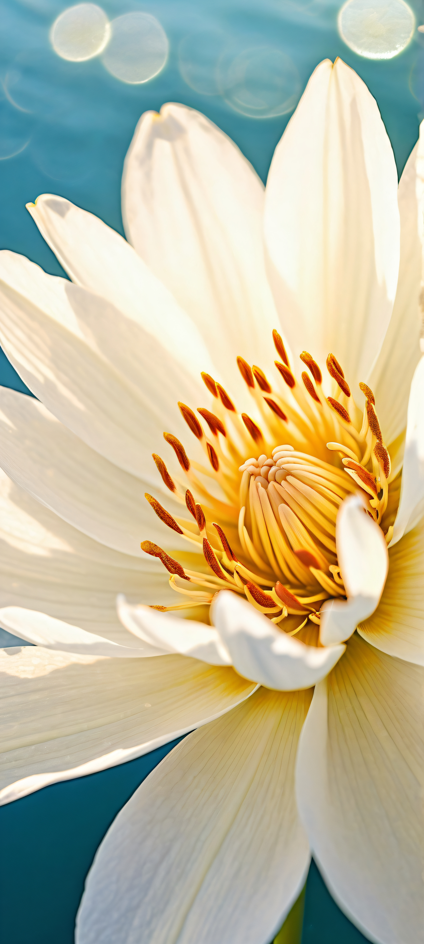 A breathtaking vertical portrait of petals placed in the lower-middle, featuring intricate micro-details and a seamlessly merging soft focus ocean waves, perfectly optimized for iPhone and Android home screens.