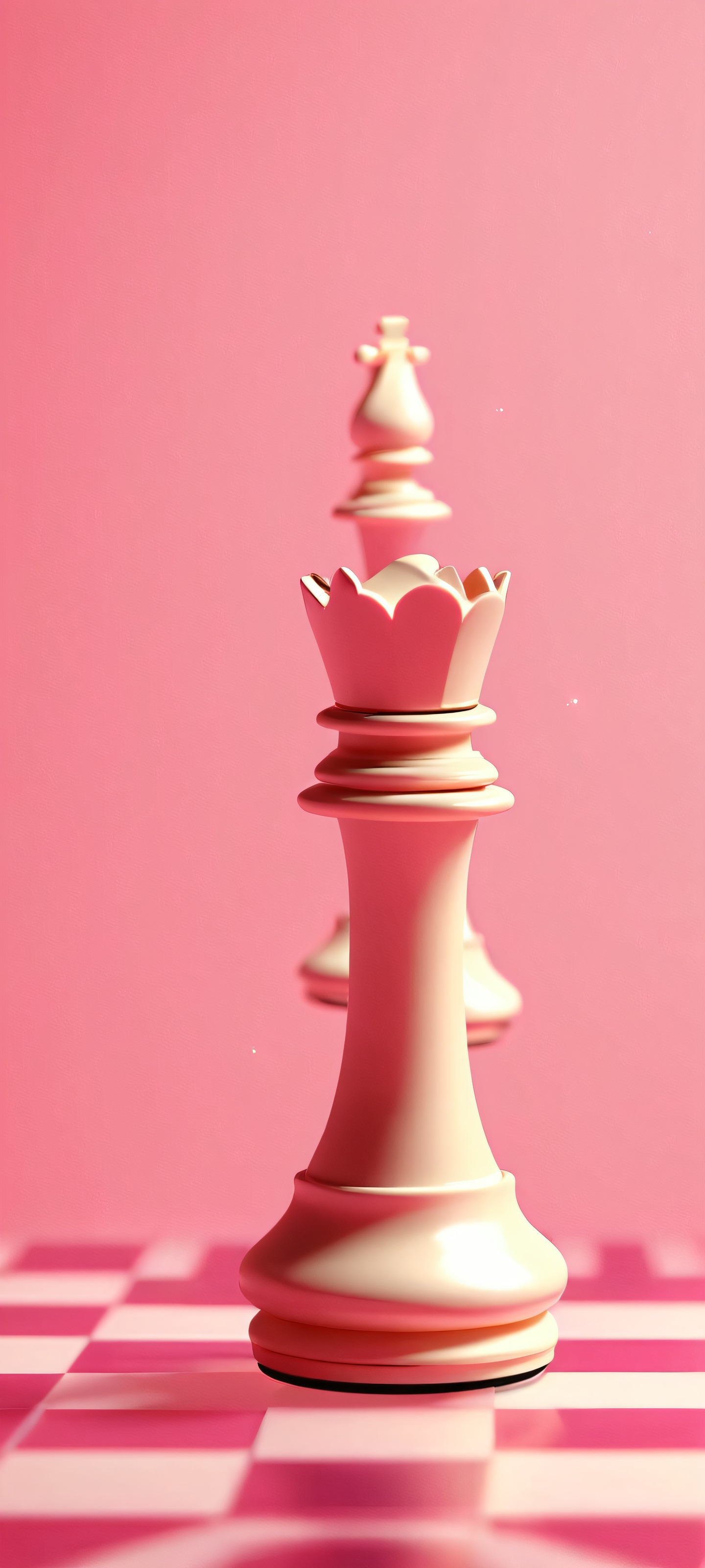 Indulge in this stunning vertical mobile wallpaper featuring floating chess pieces suspended in space. This masterpiece is meticulously crafted to adorn your iPhone, Samsung Galaxy, or Android home screen with its 2K QHD resolution and highest quality details. Let the soft glow and pastel hues transport you to a surreal realm.