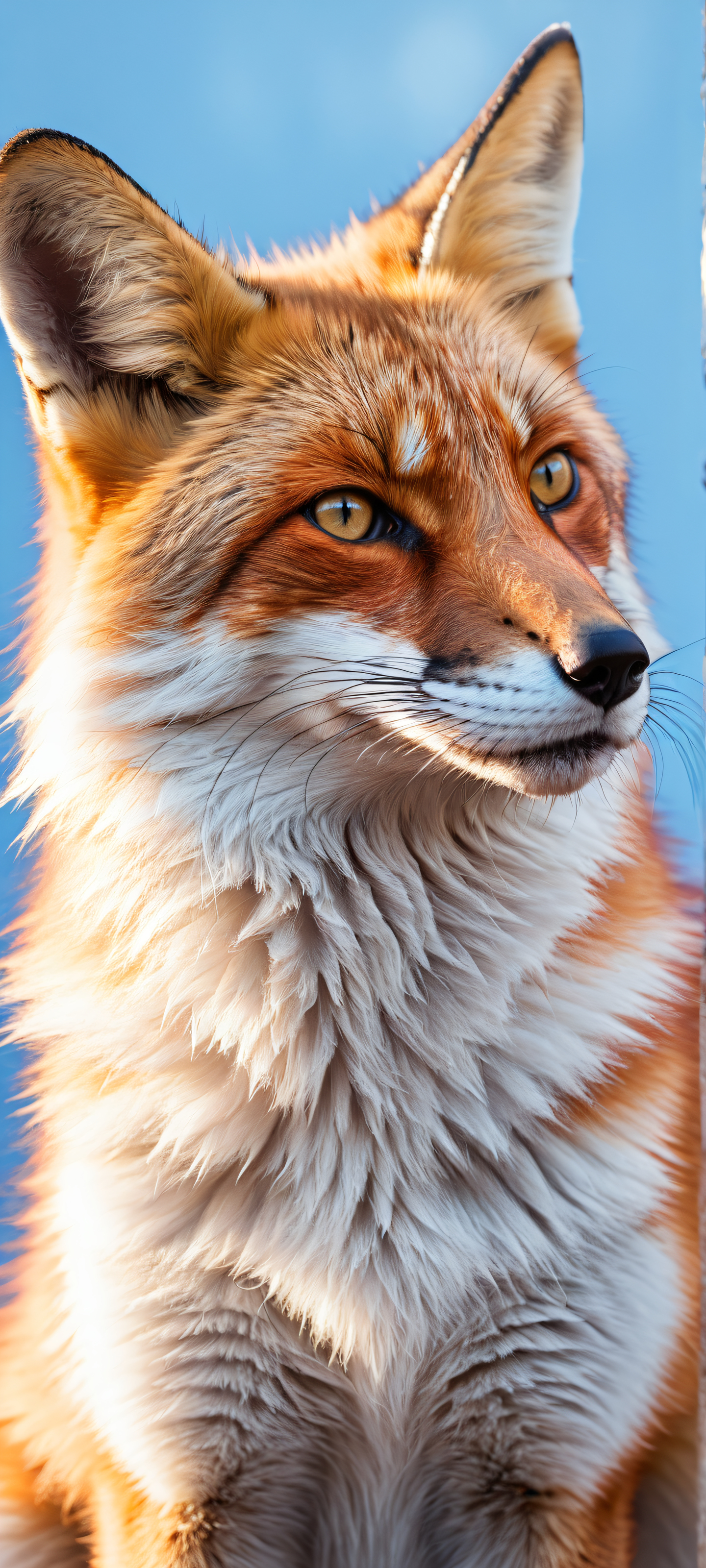 Anthro fox portrait with insane micro-details on a vast blue background - perfect for iPhone/Android home screens.
