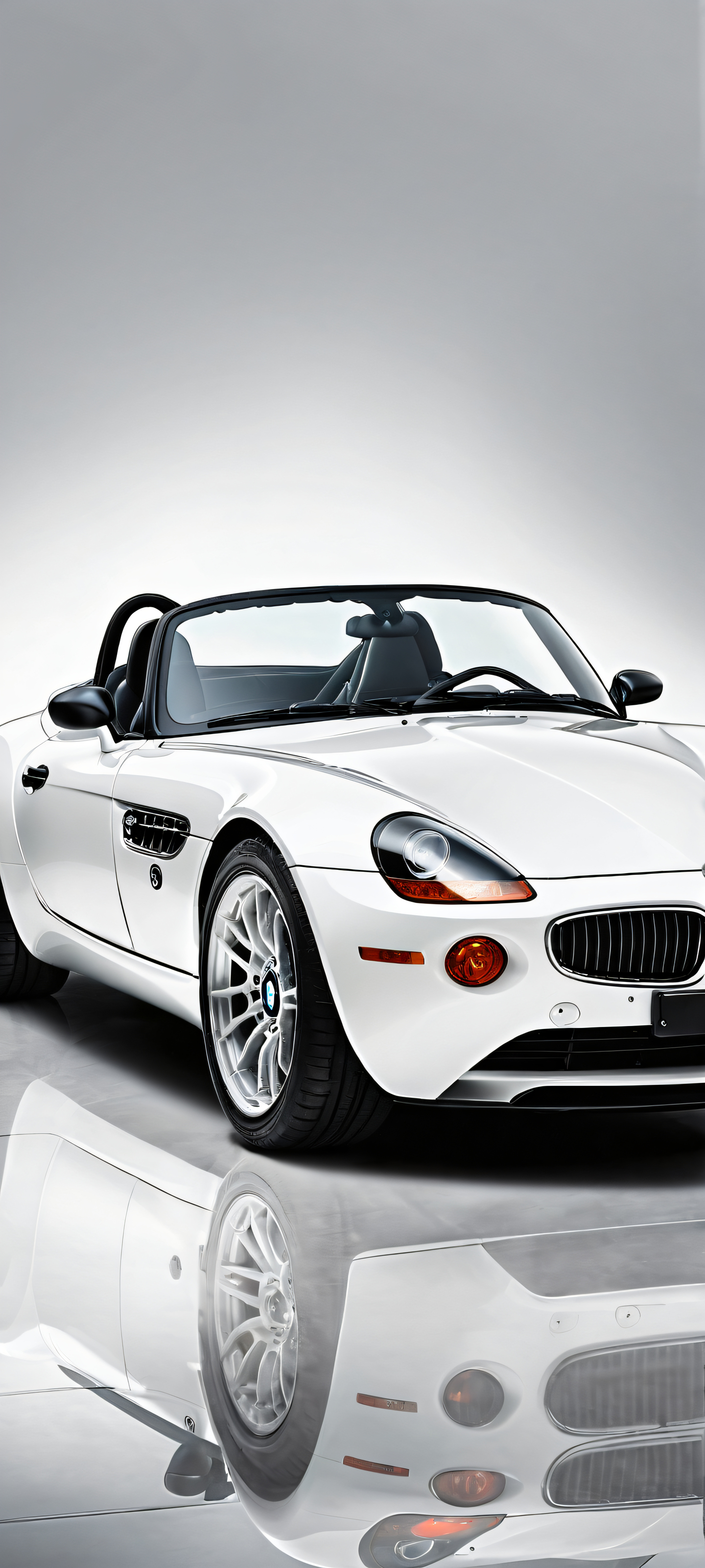 A breathtaking vertical portrait artwork of BMW Z8 placed in the lower-middle with intricate micro-details of its sleek engine and wheels, Perfectly clean and empty top half with vast pure void, simple white background below, Award-winning digital art, pristine clarity, stunning visual impact, Ethereal lighting with brilliant colors, ray-traced reflections, and crystal-clear clarity, high-angle shot, #FFFFFF (White), #F7F7F7 (Light Gray), ethereal lighting, radiant, brilliant colors, ray traced reflections, pristine clarity, portrait composition, centered subject in the lower middle, perfectly clean and smooth top half for UI, extreme depth of field blurred background, highly textured surfaces, intricate micro-details, physically based rendering, award-winning digital art, epic breathtaking scale, stunning visual impact, perfect composition, macOS wallpaper aesthetic, masterpiece, 2K QHD resolution, 9:20 aspect ratio.