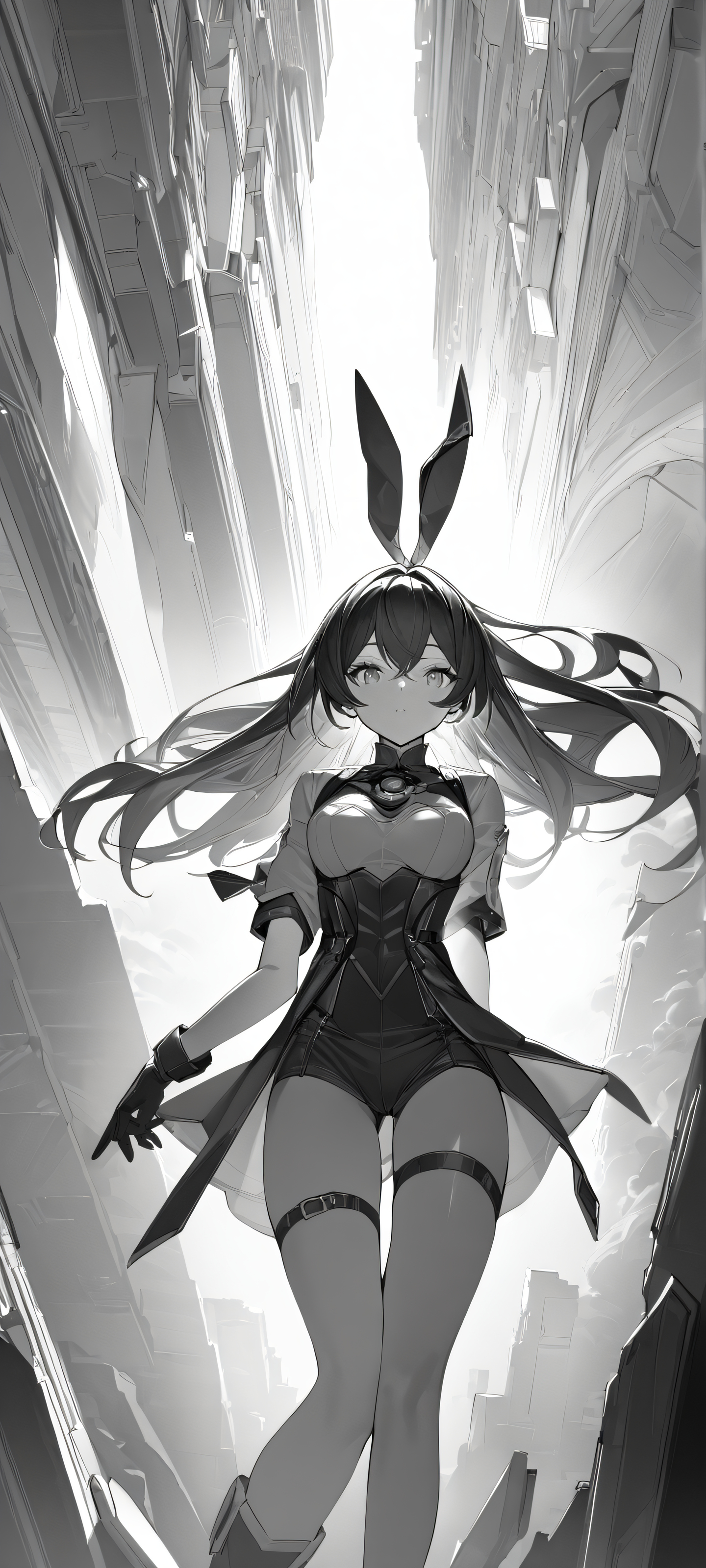 iPhone and Android compatible. A stunning vertical grayscale portrait of a girl amidst amber sidelighting.