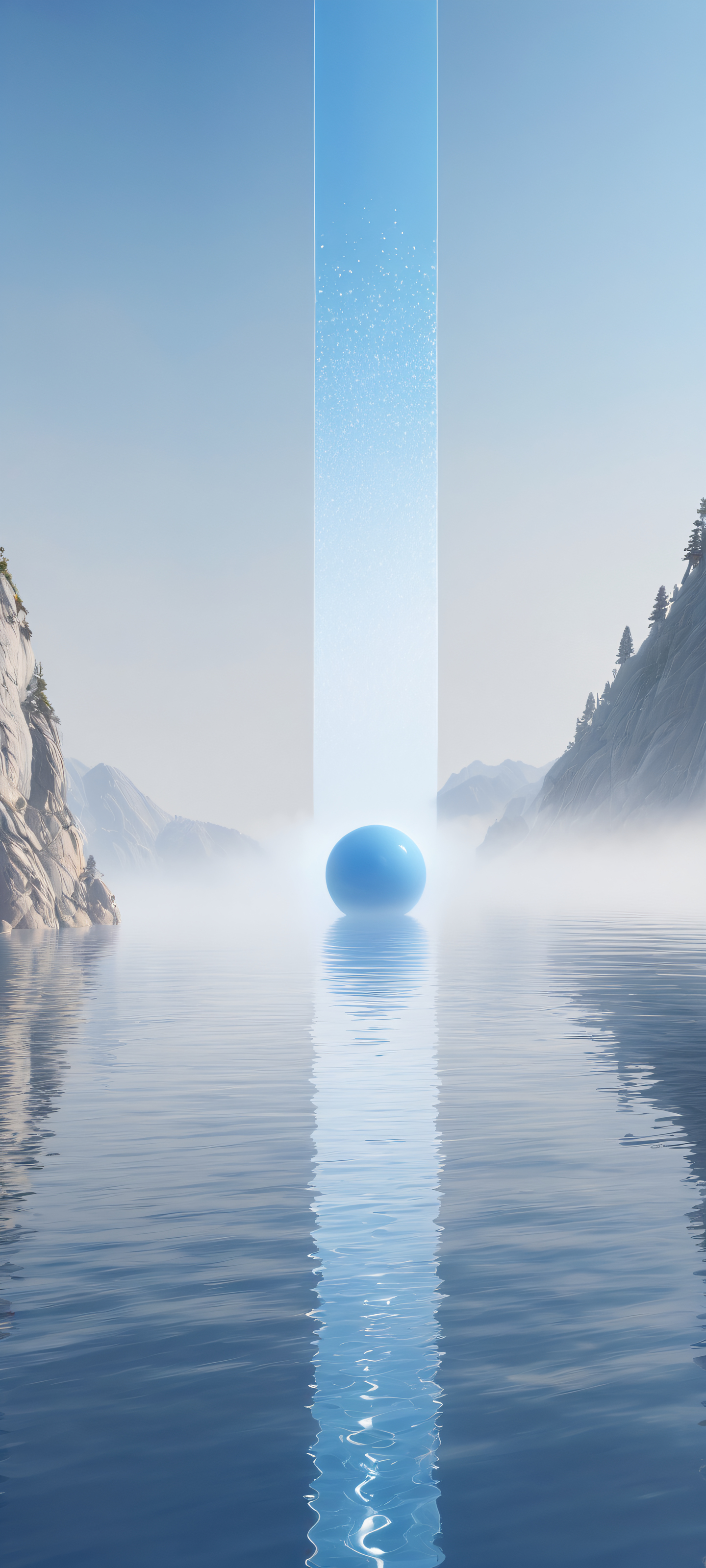 A breathtaking portrait of Unreal shapes emerging from the fog on an iPhone/Android device's home screen.