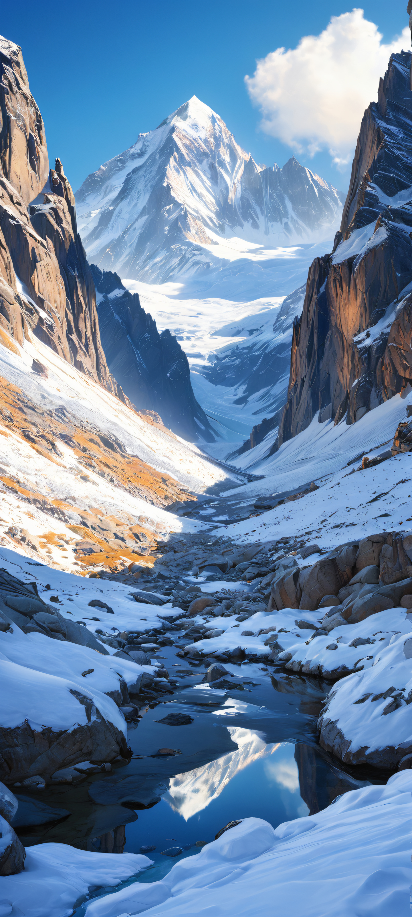 Perfectly optimized for your iPhone, Samsung Galaxy, or Android home screen. This stunning digital art features breathtaking vertical portrait composition, with ethereal lighting reflecting off the snow-capped peaks. The result is a masterpiece of visually striking proportions, reminiscent of video game art from popular 8K resolution games.