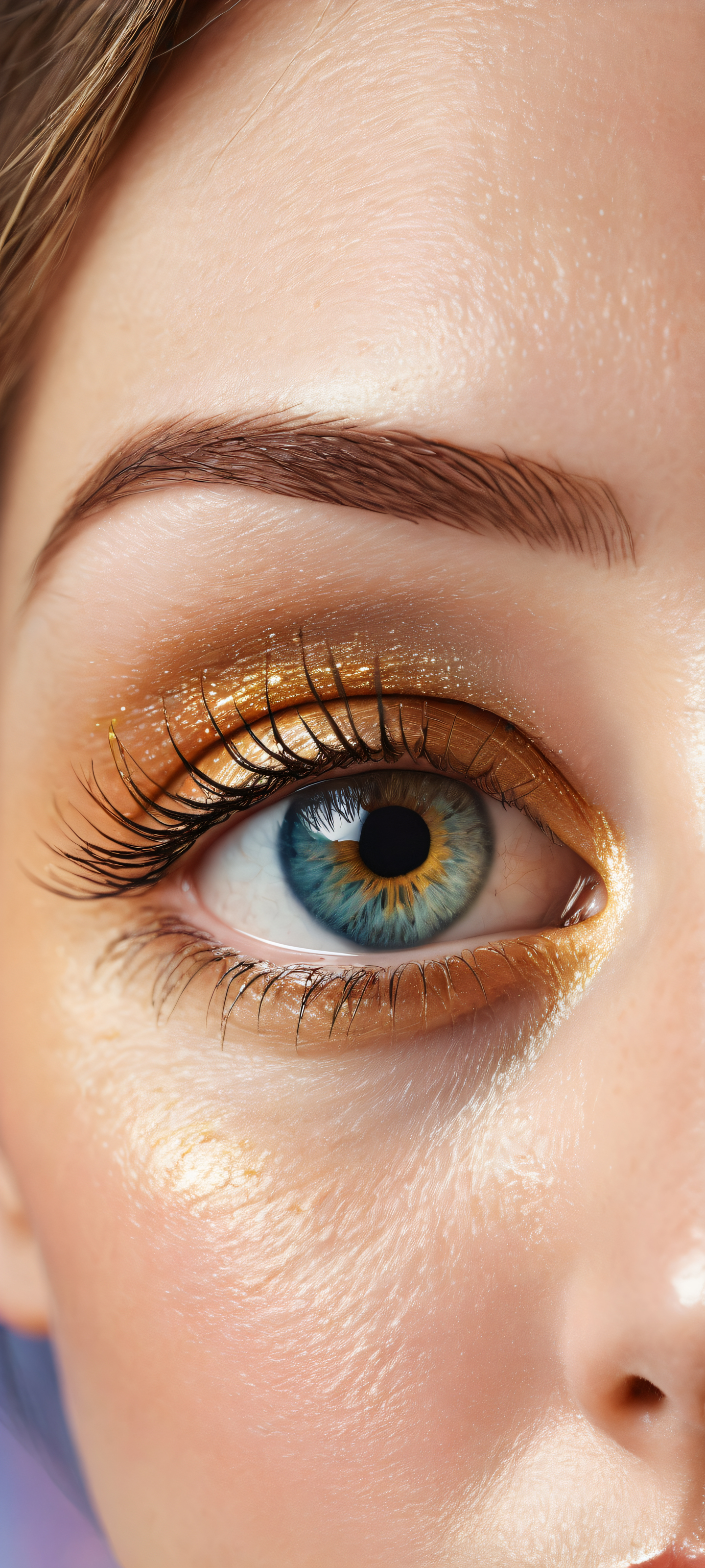 A breathtaking vertical portrait artwork of A beautifully placed portrait with insane micro-details, placed in the lower-middle with intricate illustrations and stunning depth of field., Perfectly clean and empty top half with vast pure void, seamlessly transitioning into a breathtaking detailed illustration in the bottom half., Award-winning digital art, stunning visual impact, with a focus on texture and scale to match Apple UI level excellence., Ethereal lighting, radiating brilliant colors with ray-traced reflections, creating a sense of purity and clarity, A palette dominated by soft pastel hues, with subtle golden undertones to emphasize the beauty of the subject’s eyes, ethereal lighting, radiant, brilliant colors, ray traced reflections, pristine clarity, portrait composition, centered subject in the lower middle, perfectly clean and smooth top half for UI, extreme depth of field blurred background, highly textured surfaces, intricate micro-details, physically based rendering, award-winning digital art, epic breathtaking scale, stunning visual impact, perfect composition, macOS wallpaper aesthetic, masterpiece, 2K QHD resolution, 9:20 aspect ratio.