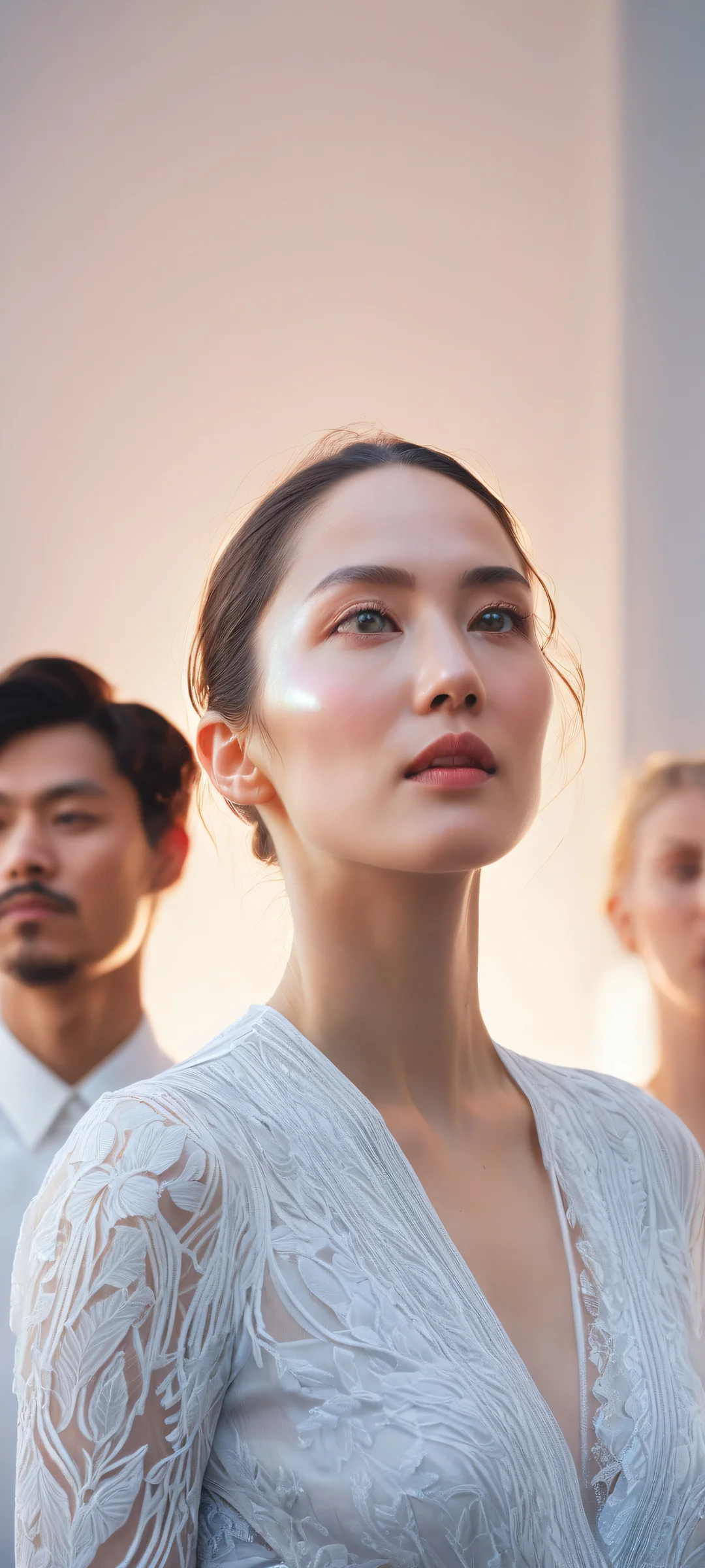Perfectly optimized for iPhone, Samsung Galaxy, and Android home screens. This breathtaking artwork features a serene portrait of a girl, exuding warmth and elegance. The top half is immaculately clean, allowing the viewer to focus on her captivating smile and micro-details. The background transitions from pure white to warm beige and brown tones, evoking feelings of comfort and serenity.