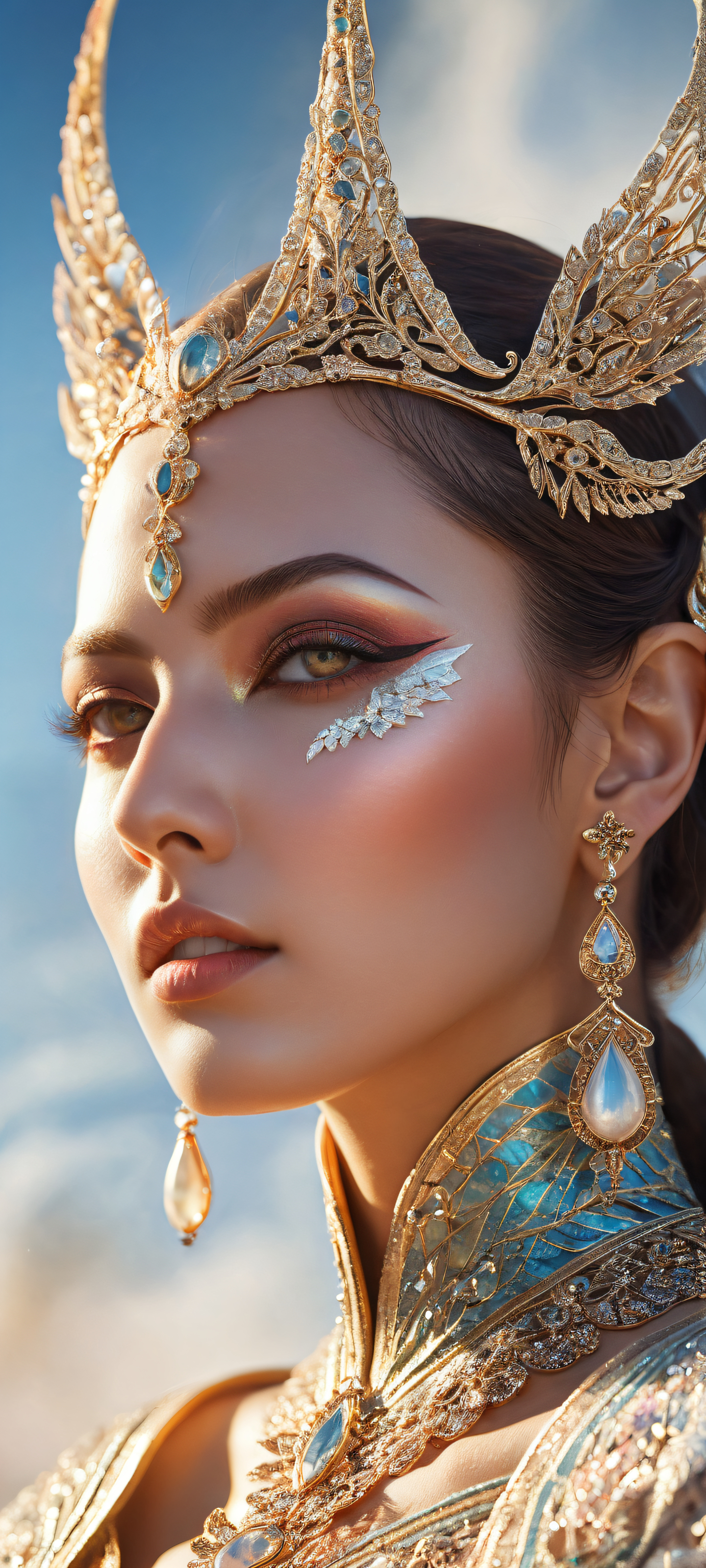 Perfectly optimized for your iPhone, Samsung Galaxy, and Android home screens. This breathtaking digital art features a stunning portrait of a mystical being placed in the lower-middle, showcasing intricate micro-details. The top half is clean and empty, allowing for a seamless blend of the subject into the ethereal background.