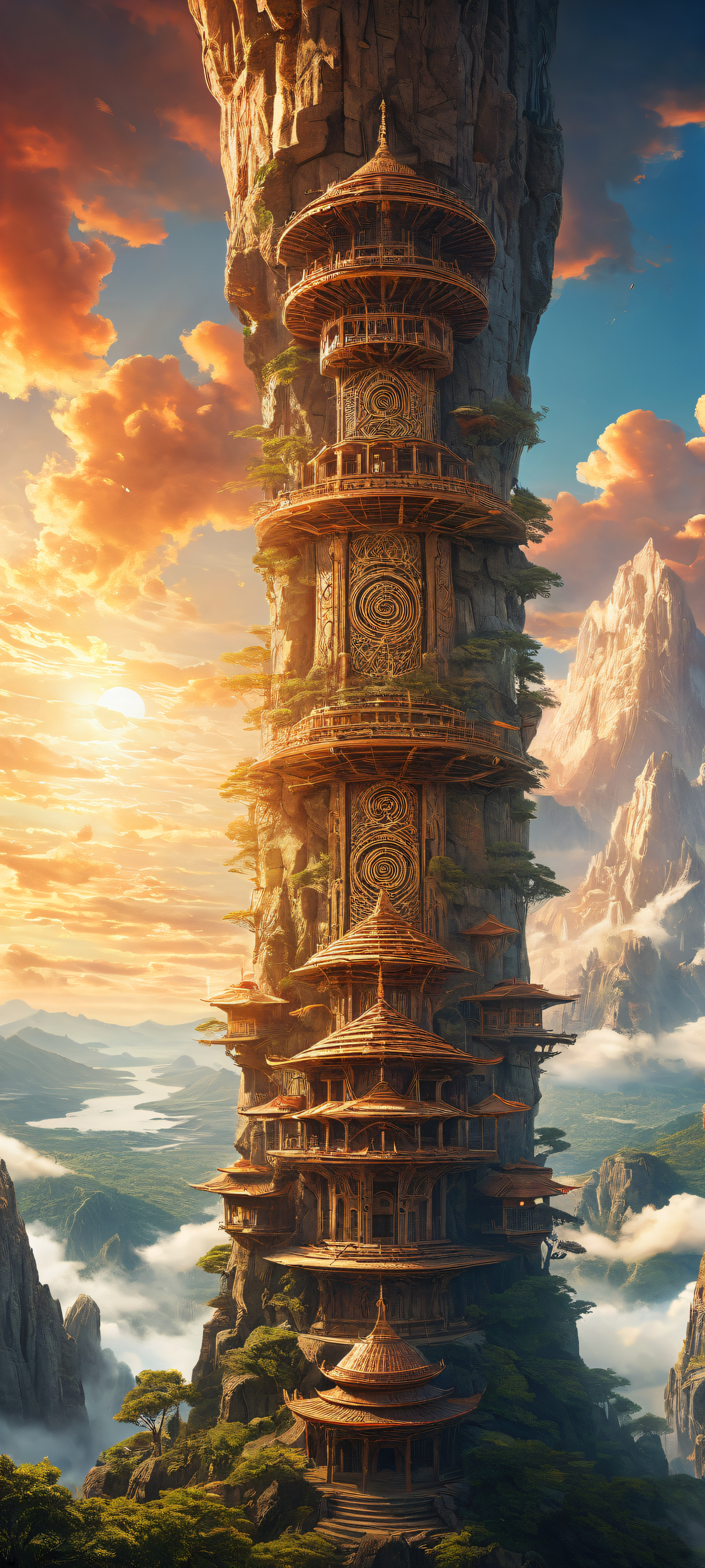 Step into a breathtaking world of ancient mysticism, where intricately detailed scrolls meet swirling clouds and fantastical structures. Perfectly optimized for your iPhone, Samsung Galaxy, or Android home screen, this award-winning digital art masterpiece transports you to an otherworldly realm of radiant colors and ray-traced reflections.
