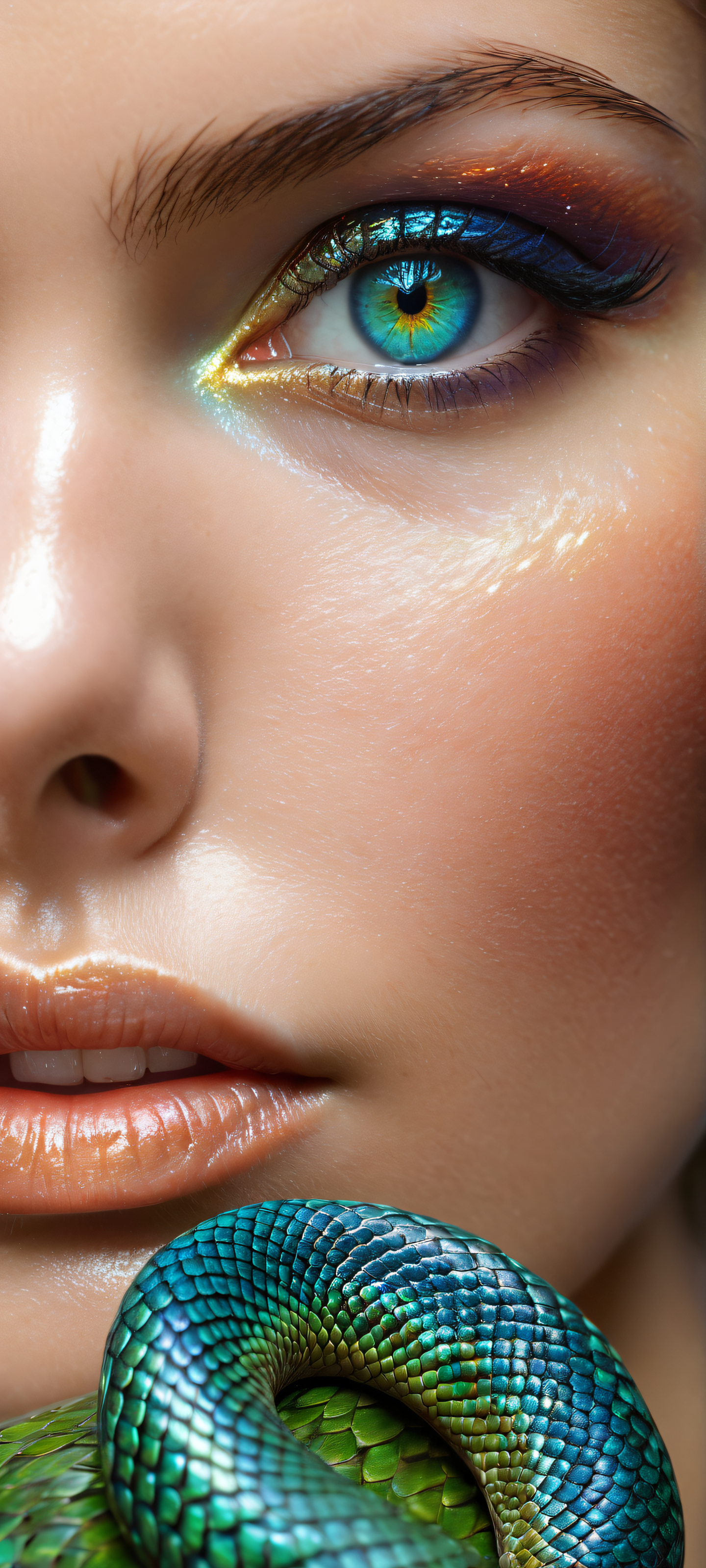 Perfectly optimized for your iPhone, Samsung Galaxy, or Android home screen, this stunning digital artwork features a breathtaking vertical portrait of Snake Rya. With pristine clarity and stunning visual impact, reminiscent of Apple UI design standards, this masterpiece is sure to captivate. The dominant color palette of iridescent blues and greens evokes feelings of mystique and wonder.