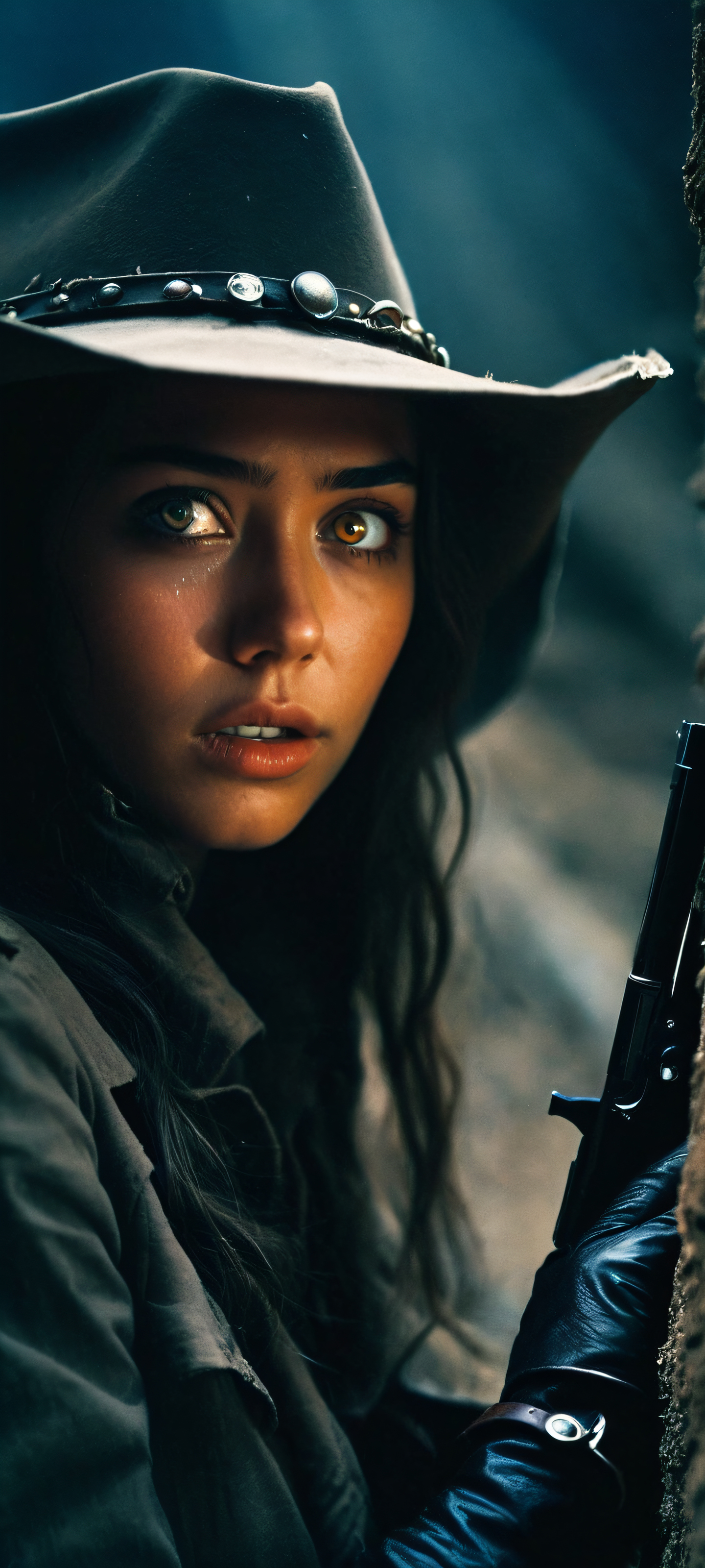 A hauntingly beautiful image of girls in a ruined abyssal trench, captured with a cowboy shot and glowing eyes against a black background. Perfect for iPhone or Android devices.