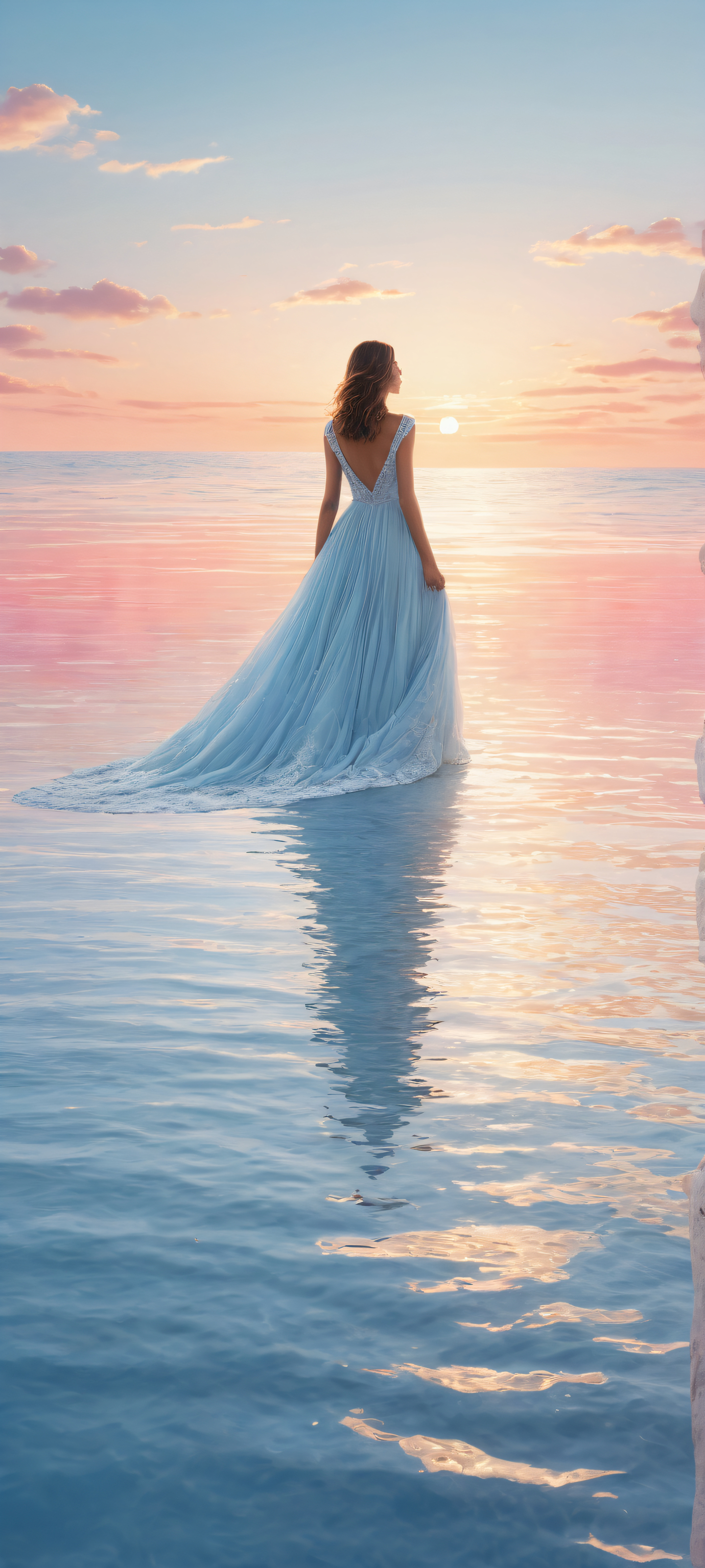 A breathtaking vertical portrait artwork of A lone figure, placed in the lower-middle with insane micro-details, showcasing intricate patterns and textures., Perfectly clean and empty top half with vast pure void, allowing the subject to take center stage amidst a sea of nothingness., Award-winning digital art, pristine clarity, with a focus on delicate anime coloring and cinematic lighting techniques., Volumetric and cinematic lighting techniques create an ethereal glow, with subtle ray traced reflections that seem almost surreal., A palette of soft pastel hues, reminiscent of dawn’s gentle awakening, featuring calming blues, pinks, and creamy whites., ethereal lighting, radiant, brilliant colors, ray traced reflections, pristine clarity, portrait composition, centered subject in the lower middle, perfectly clean and smooth top half for UI, extreme depth of field blurred background, highly textured surfaces, intricate micro-details, physically based rendering, award-winning digital art, epic breathtaking scale, stunning visual impact, perfect composition, macOS wallpaper aesthetic, masterpiece, 2K QHD resolution, 9:20 aspect ratio.