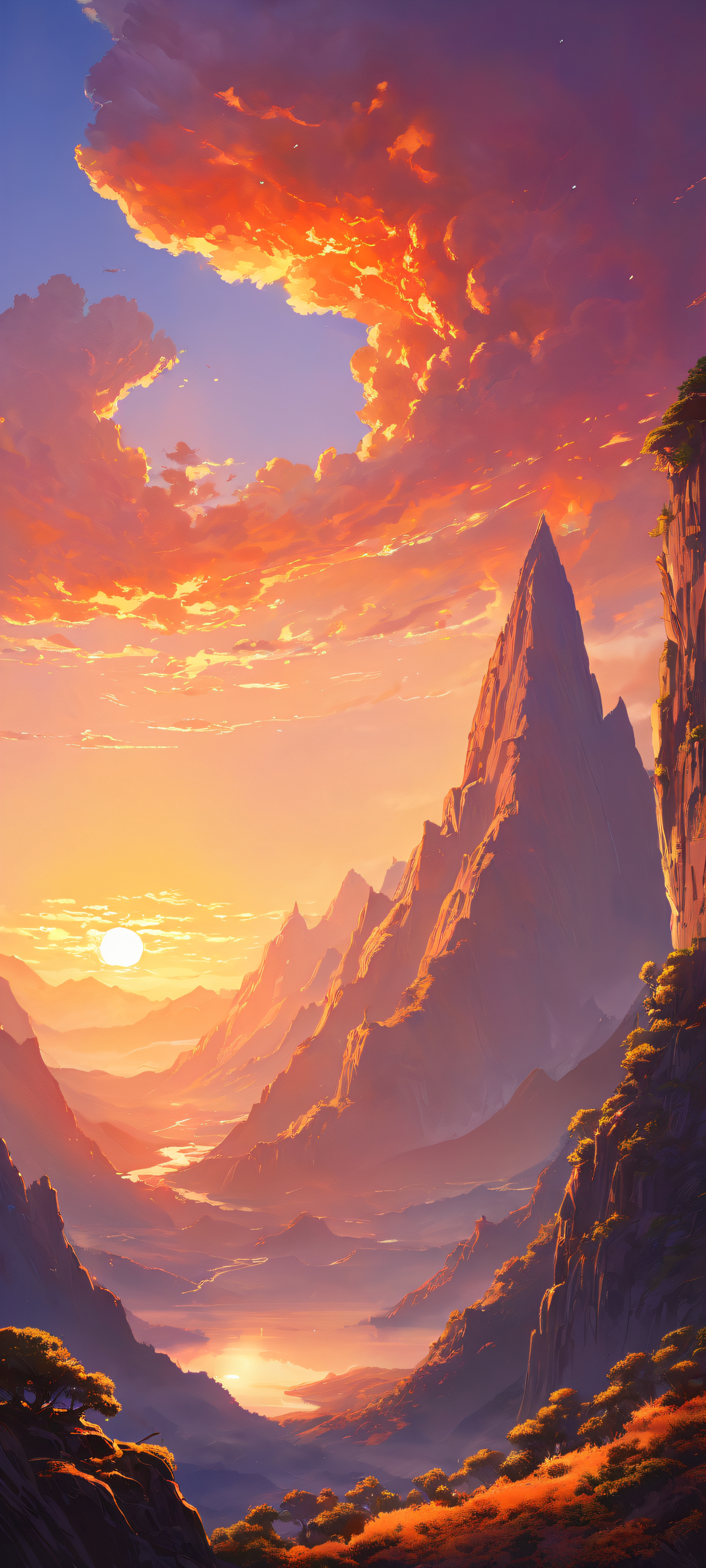 Experience the awe-inspiring beauty of this stunning mobile wallpaper. With its perfectly clean and empty top half, you’ll be treated to an unobstructed view of the majestic mountains, while the lower half is filled with lush greenery and wispy clouds under a radiant sunrise. This award-winning digital art piece showcases remarkable illustration skills and attention to detail, making it a perfect addition to your iPhone or Android home screen.