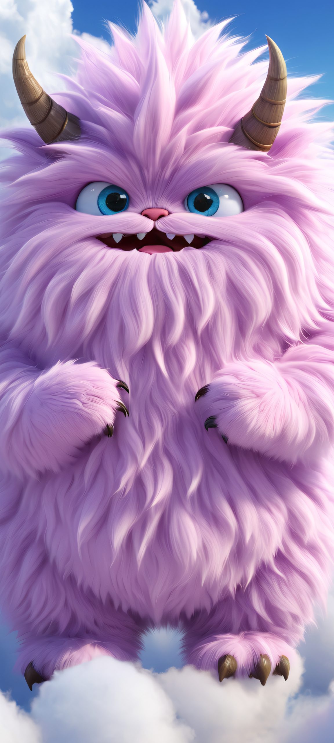 Indulge in this stunning 2K QHD masterpiece, expertly crafted to adorn your iPhone, Samsung Galaxy, or Android home screen. The whimsical scene features a lovable Fluffy Monster drifting effortlessly amidst fluffy white clouds, creating a sense of serenity and wonder.