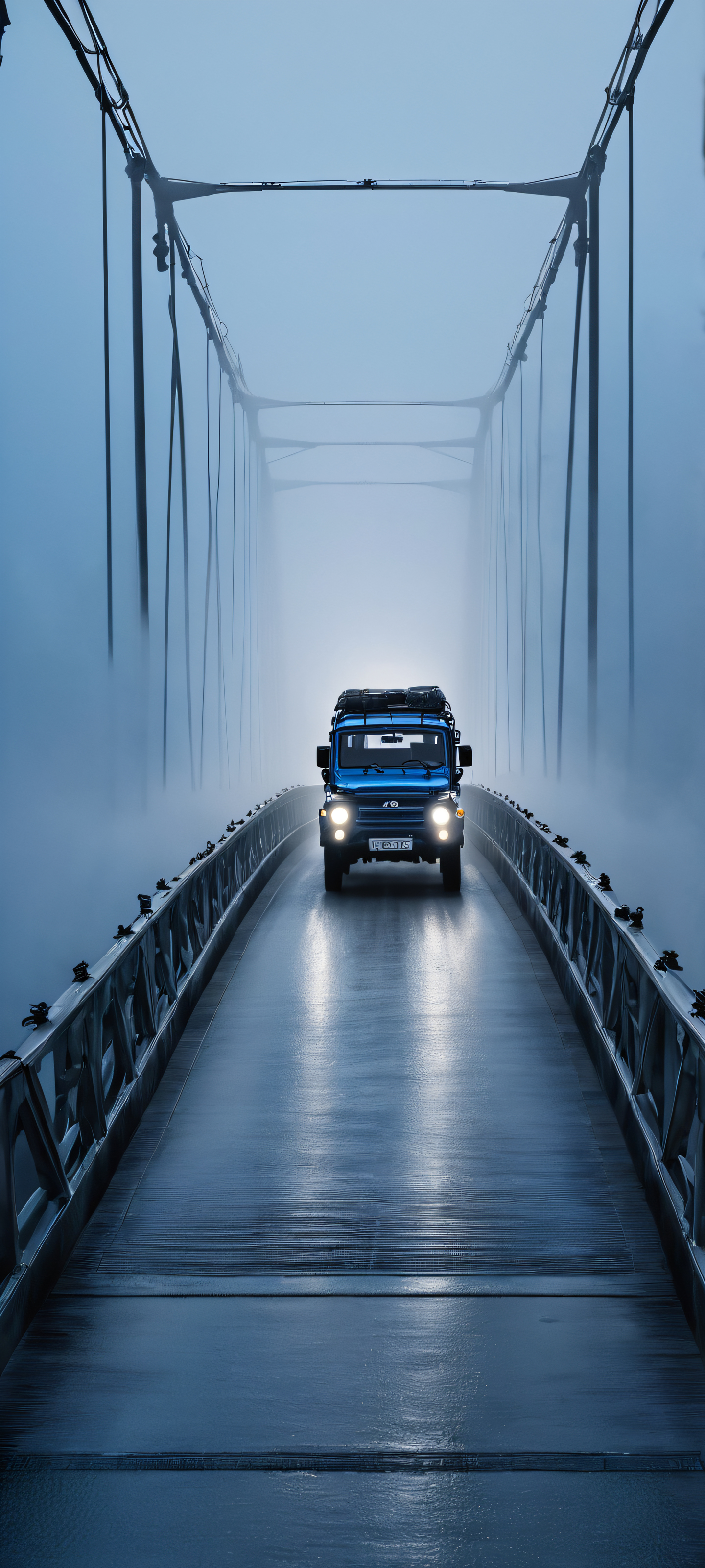 Elevate your mobile phone’s home screen with this stunning 2K QHD masterpiece, perfectly optimized for iPhone, Samsung Galaxy, and Android devices. The dramatic low-light scene of the Foggy Bridge at dusk is a breathtaking visual treat, showcasing the highest quality and highly detailed design.