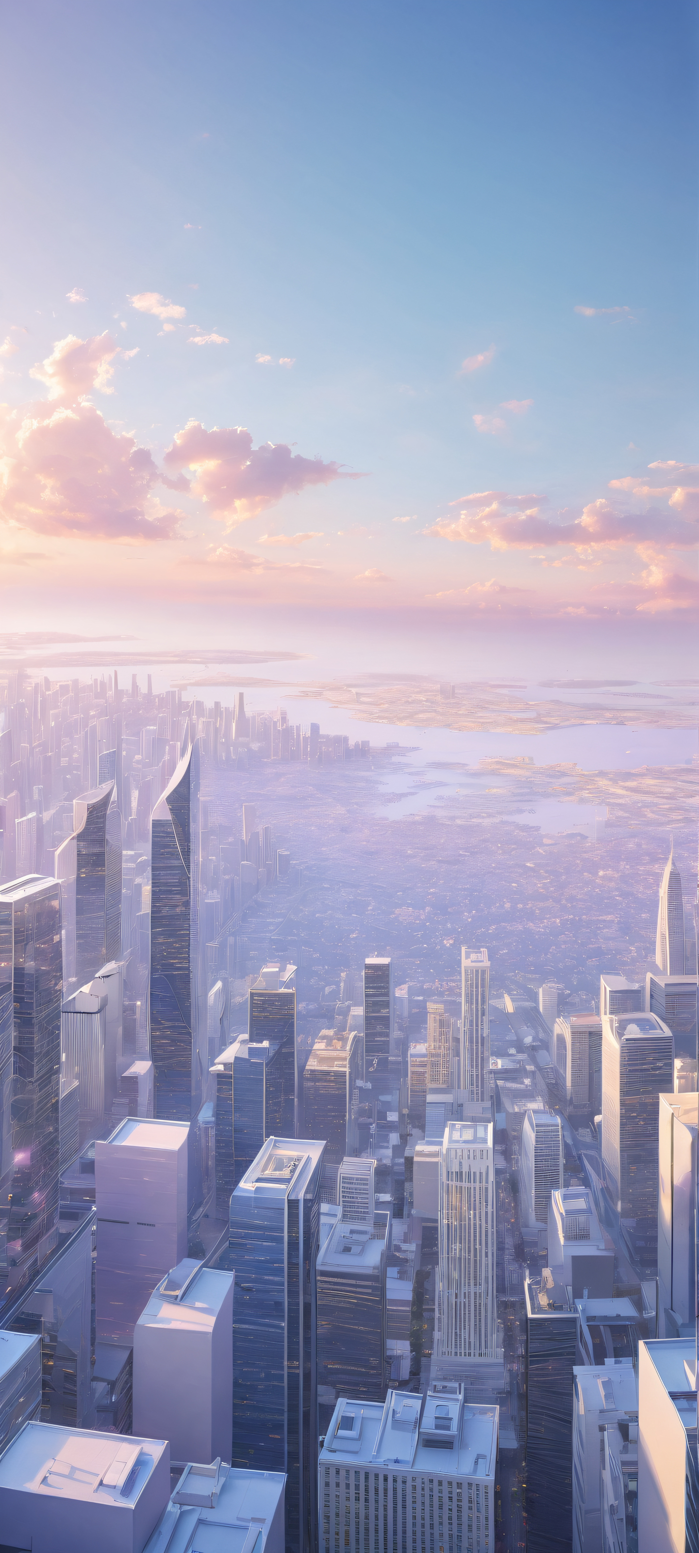A breathtaking vertical portrait artwork of Floating cityscape placed in the lower-middle with insane micro-details, Perfectly clean and empty top half with vast pure void, semi-realism inspired background, Award-winning digital art, stunning visual impact, pristine clarity, Ethereal lighting with radiant colors, ray-traced reflections, and flawless brightness, [‘Soft Pastel Blues’, ‘Whispery Whites’, ‘Pale Lavenders’], ethereal lighting, radiant, brilliant colors, ray traced reflections, pristine clarity, portrait composition, centered subject in the lower middle, perfectly clean and smooth top half for UI, extreme depth of field blurred background, highly textured surfaces, intricate micro-details, physically based rendering, award-winning digital art, epic breathtaking scale, stunning visual impact, perfect composition, macOS wallpaper aesthetic, masterpiece, 2K QHD resolution, 9:20 aspect ratio.