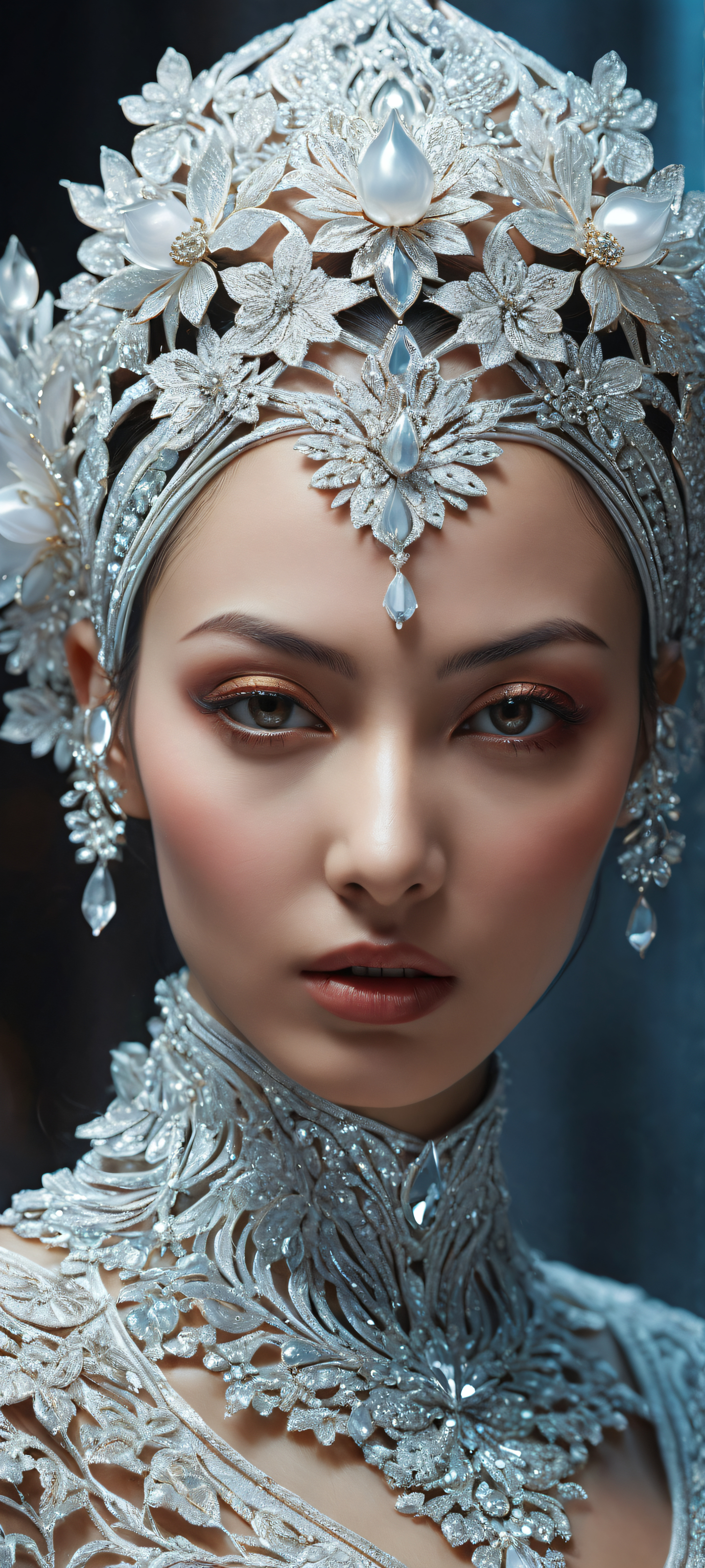 A breathtaking vertical portrait artwork of A beautifully rendered, 3D-crafted Phalia il facial sculpture, placed in the lower-middle with insane micro-details., Perfectly clean and empty top half with vast pure void, allowing for unobstructed UI breathing space., Award-winning digital art, stunning visual impact, and pristine clarity., Éthéré, radiant lighting with brilliant colors, ray-traced reflections, and a sense of airiness., [‘Rich’, ‘Deep’, ‘Dark’], ethereal lighting, radiant, brilliant colors, ray traced reflections, pristine clarity, portrait composition, centered subject in the lower middle, perfectly clean and smooth top half for UI, extreme depth of field blurred background, highly textured surfaces, intricate micro-details, physically based rendering, award-winning digital art, epic breathtaking scale, stunning visual impact, perfect composition, macOS wallpaper aesthetic, masterpiece, 2K QHD resolution, 9:20 aspect ratio.