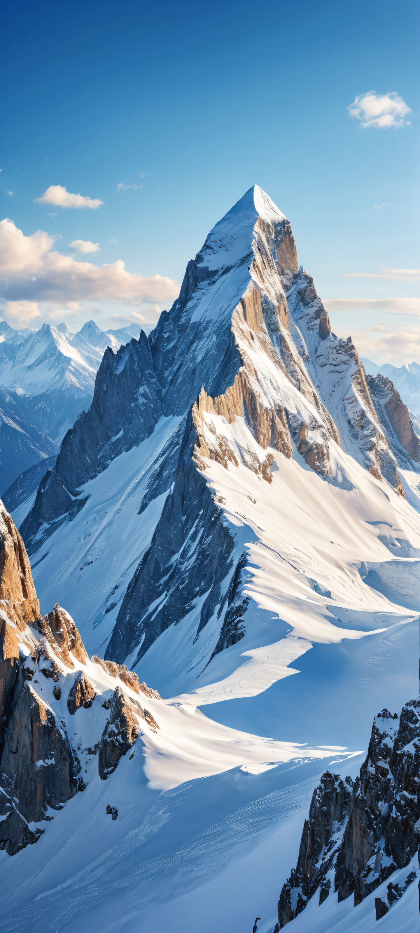 A breathtaking vertical portrait artwork of Snow-capped mountain peaks placed in the lower-middle with insane micro-details of rock formations and ice crevices., Perfectly clean and empty top half with vast pure void, gradually giving way to a breathtaking winter landscape featuring towering mountains, rocks, and snow-covered terrain., Award-winning digital art, stunning visual impact with pristine clarity, blending seamlessly into an immersive 8K landscape. , Éthéré, radiant lighting casting brilliant rays on the snow-capped peaks, with ray-traced reflections adding depth and dimensionality to the scene., Dominant palette of soft blues and whites, evoking a sense of serenity and wonder, with subtle hints of icy blue and earthy tones., ethereal lighting, radiant, brilliant colors, ray traced reflections, pristine clarity, portrait composition, centered subject in the lower middle, perfectly clean and smooth top half for UI, extreme depth of field blurred background, highly textured surfaces, intricate micro-details, physically based rendering, award-winning digital art, epic breathtaking scale, stunning visual impact, perfect composition, macOS wallpaper aesthetic, masterpiece, 2K QHD resolution, 9:20 aspect ratio.