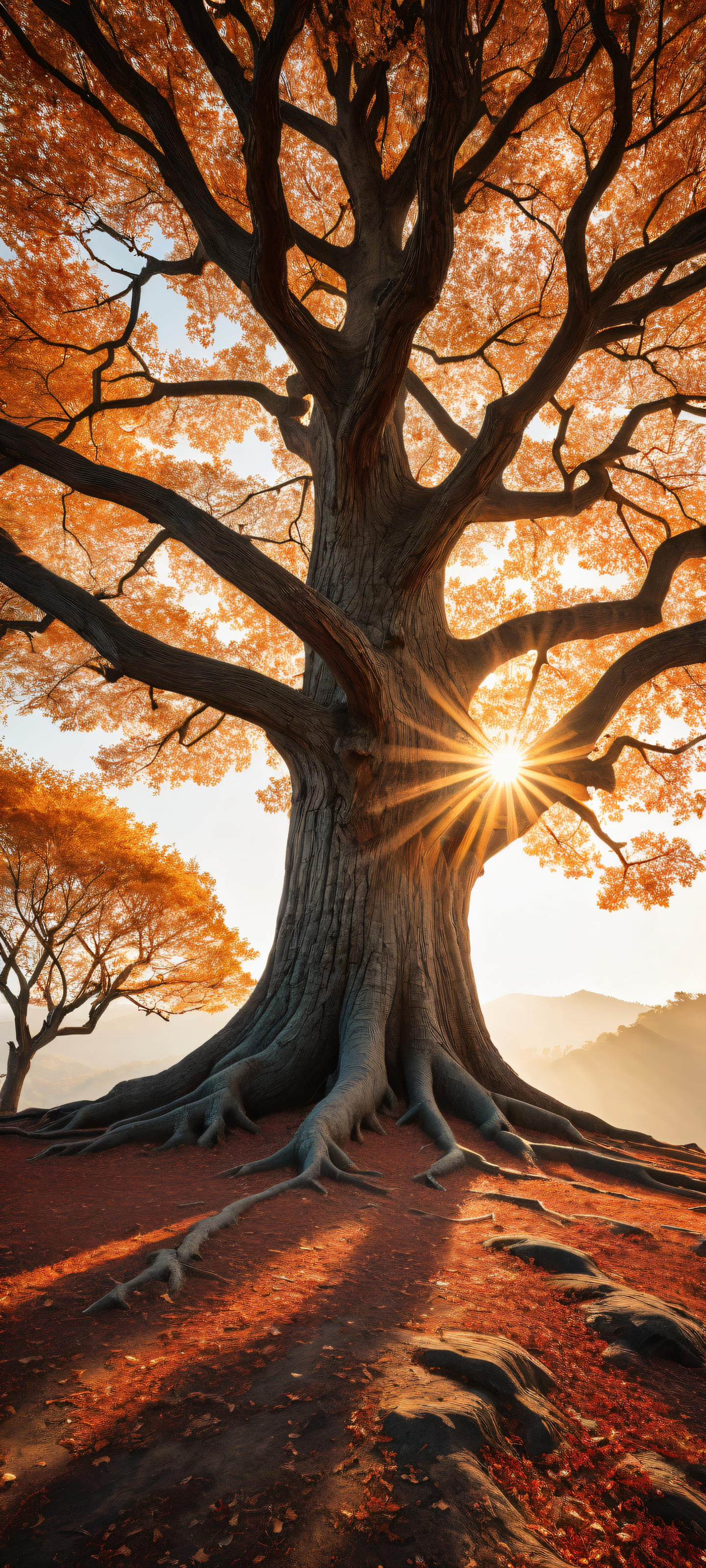 Ethereal softbox lighting radiates brilliance as this breathtaking vertical portrait artwork of a majestic tree takes center stage. Perfectly clean and empty top half allows for seamless UI breathing space, while vast expanse of subtle gradient shadows below creates depth and dimension. This stunning visual masterpiece is perfectly optimized for iPhone, SamsungGalaxy, et écrans d'accueil Android.