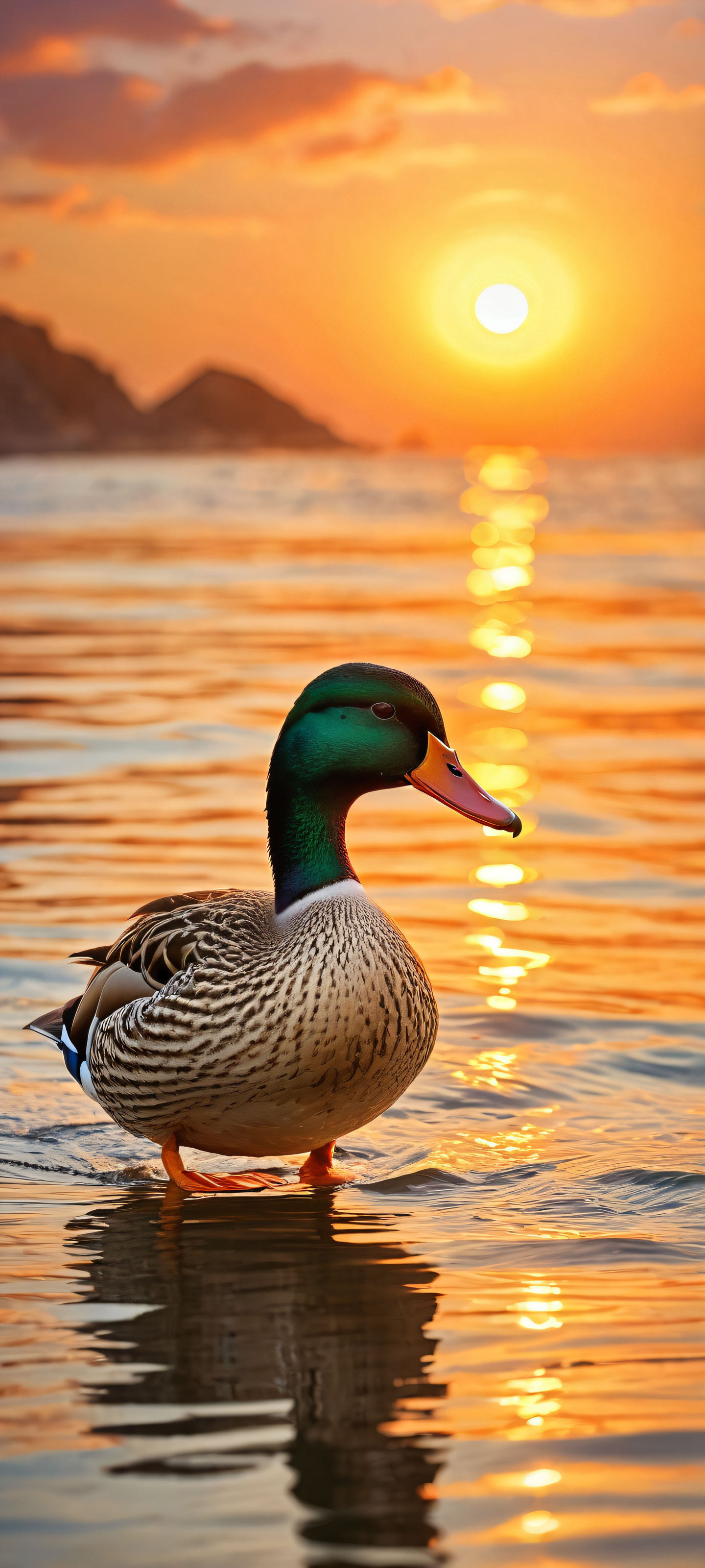 Indulge in the serene majesty of this stunning digital art, perfectly optimized for your iPhone, SamsungGalaxy, or Android home screen. The intricate details of the duck’s beak and feathers blend seamlessly into the vibrant colors of the sunset, creating a masterpiece that’s sure to leave you in awe.