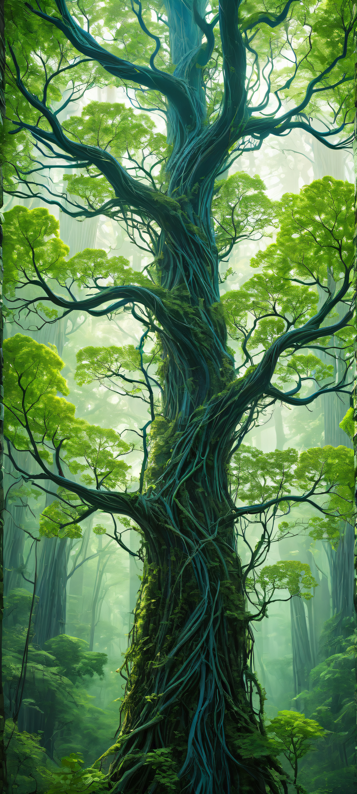 A breathtaking vertical portrait artwork of Dendritic Vines placed in the lower-middle with intricate micro-details of brain tissue and neurons, A perfectly clean and empty top half with vast pure void, beneath which lies a surreal forest of plants and trees made of nerves and brain tissue, Award-winning digital art, stunning visual impact, pristine clarity, and a deep sense of surrealism, Ethereal lighting with vibrant, radiant colors, ray-traced reflections, and an air of brightness and clarity, [‘Neon Green’, ‘Electric Blue’, ‘Violet’], ethereal lighting, radiant, brilliant colors, ray traced reflections, pristine clarity, portrait composition, centered subject in the lower middle, perfectly clean and smooth top half for UI, extreme depth of field blurred background, highly textured surfaces, intricate micro-details, physically based rendering, award-winning digital art, epic breathtaking scale, stunning visual impact, perfect composition, macOS wallpaper aesthetic, masterpiece, 2K QHD resolution, 9:20 aspect ratio.