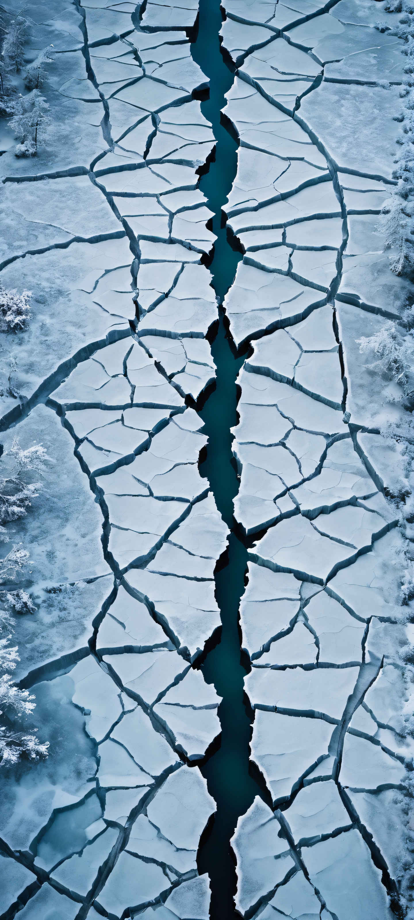 Elevate your mobile phone’s home screen with this stunning vertical wallpaper. The breathtaking aerial view of the frozen lake’s cracked surface is perfectly optimized for high-quality displays like iPhone and Samsung Galaxy. Highly detailed and rendered in 2K QHD resolution, this masterpiece will transport you to a winter wonderland.