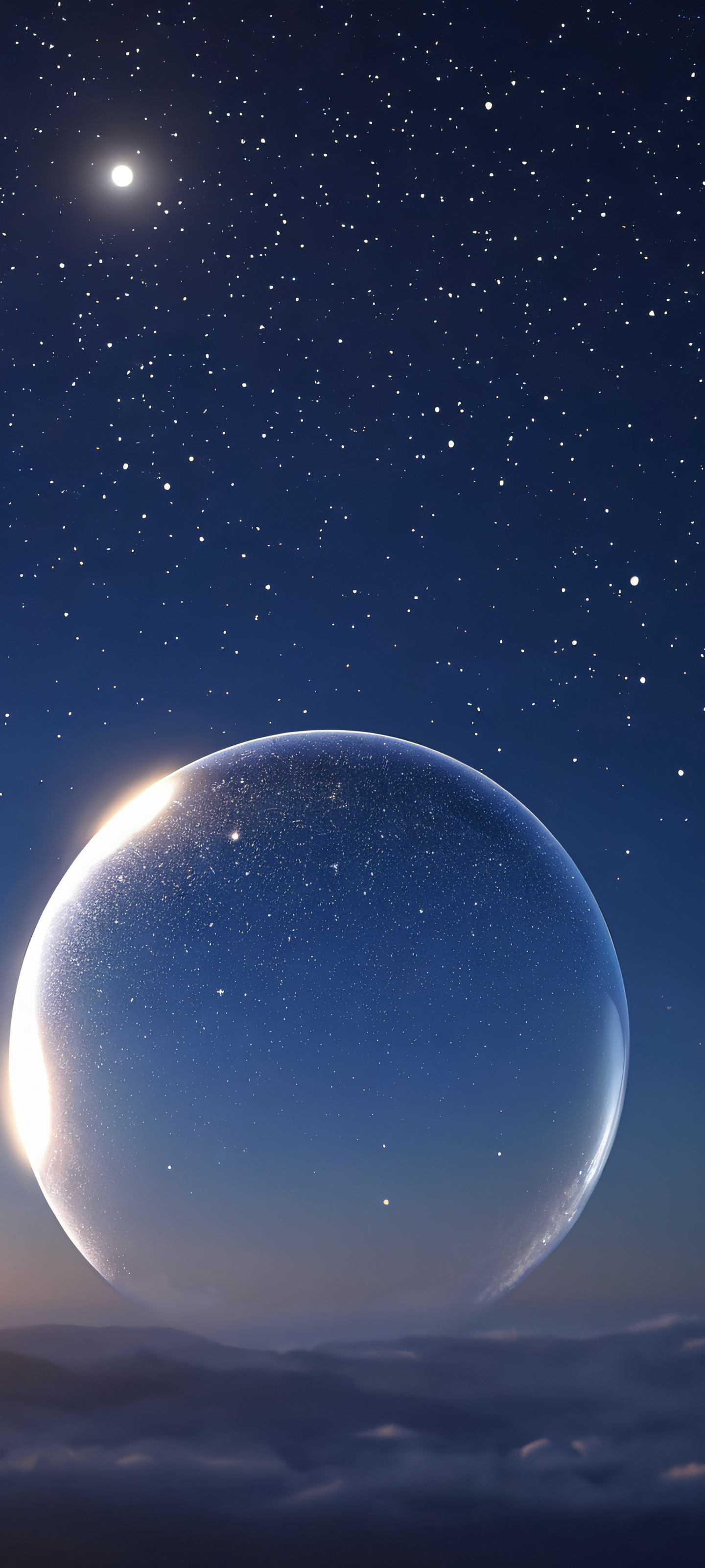 iPhone and Android users alike will be mesmerized by this stunning vertical mobile wallpaper featuring a breathtaking galactic bubble against a midnight blue night sky, perfectly optimized for your device.