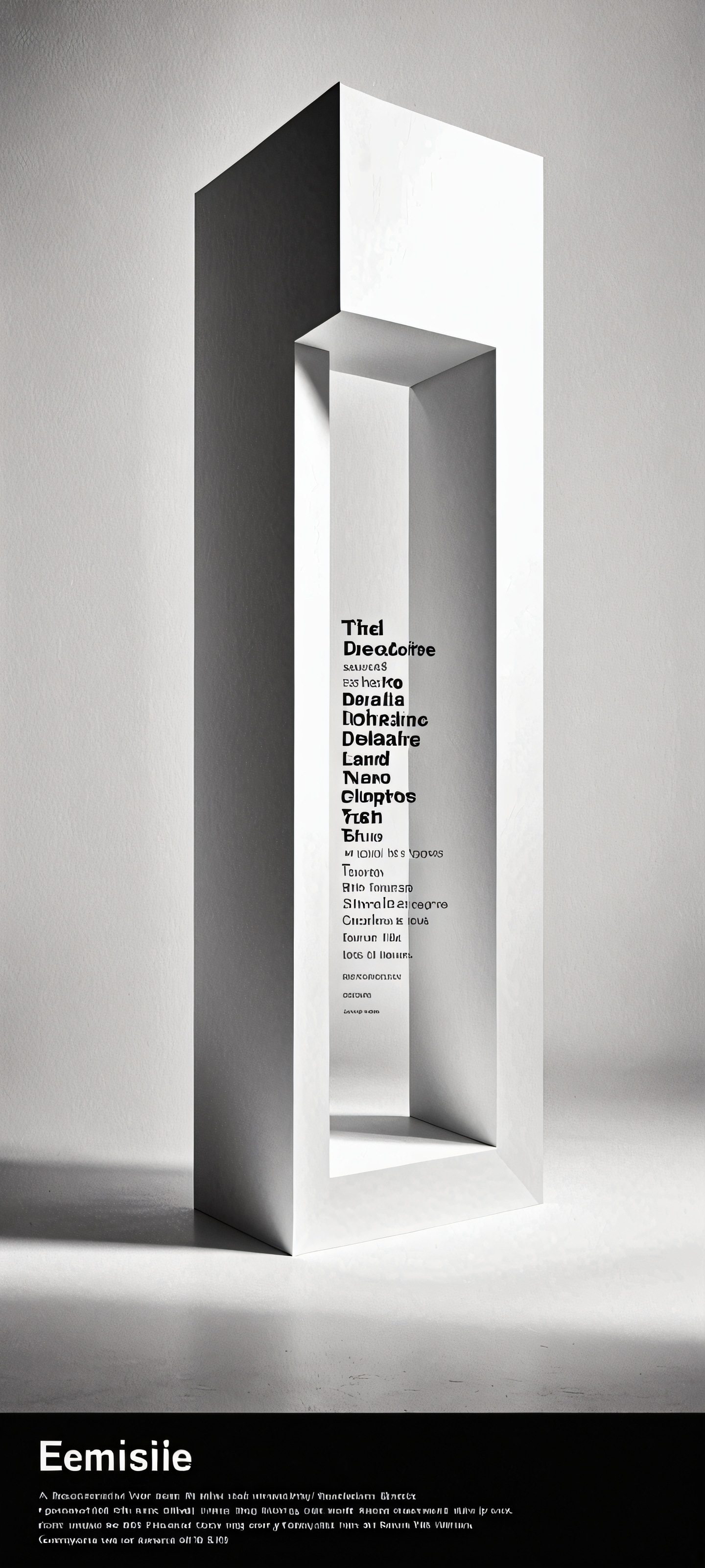 A breathtaking vertical minimalist artwork of Placed in the lower-middle, intricate micro-details of a stark geometric sans-serif typography, with immense negative space surrounding the text block., Perfectly clean and empty top half with vast pure void, centered vertical stack of condensed geometric sans-serif text in a tall 2:3 composition, Award-winning digital art, stunning visual impact, and pristine clarity., Ethereal lighting with radiant, brilliant colors, ray-traced reflections, and pristine clarity. Bright and airy, emphasizing the geometric shapes and typography., Dominant black and white palette, accentuated by subtle hints of bright white for the text, masterpiece, 2K QHD resolution, 9:20 aspect ratio.