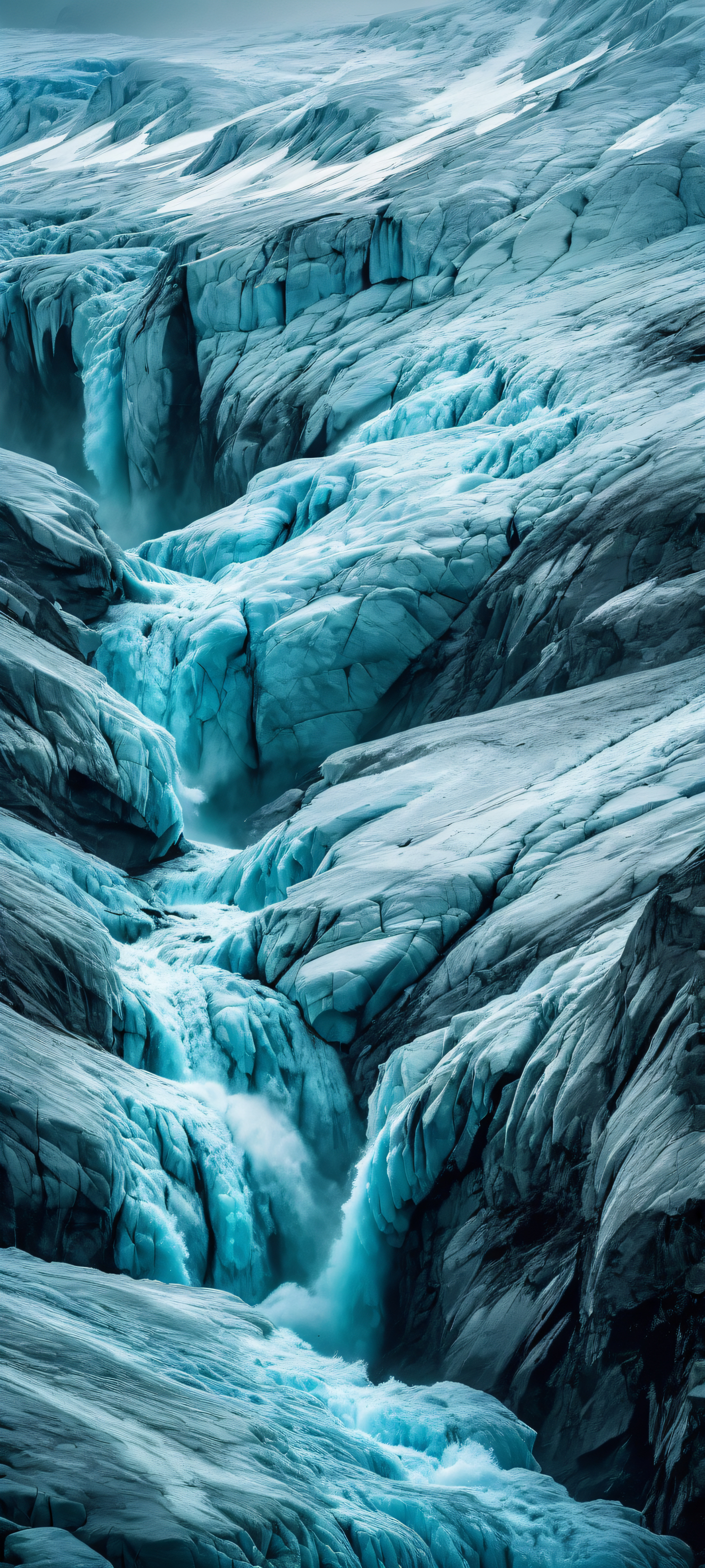 A majestic glacier landscape on a rainy day, perfectly optimized for iPhone/Android home screens.