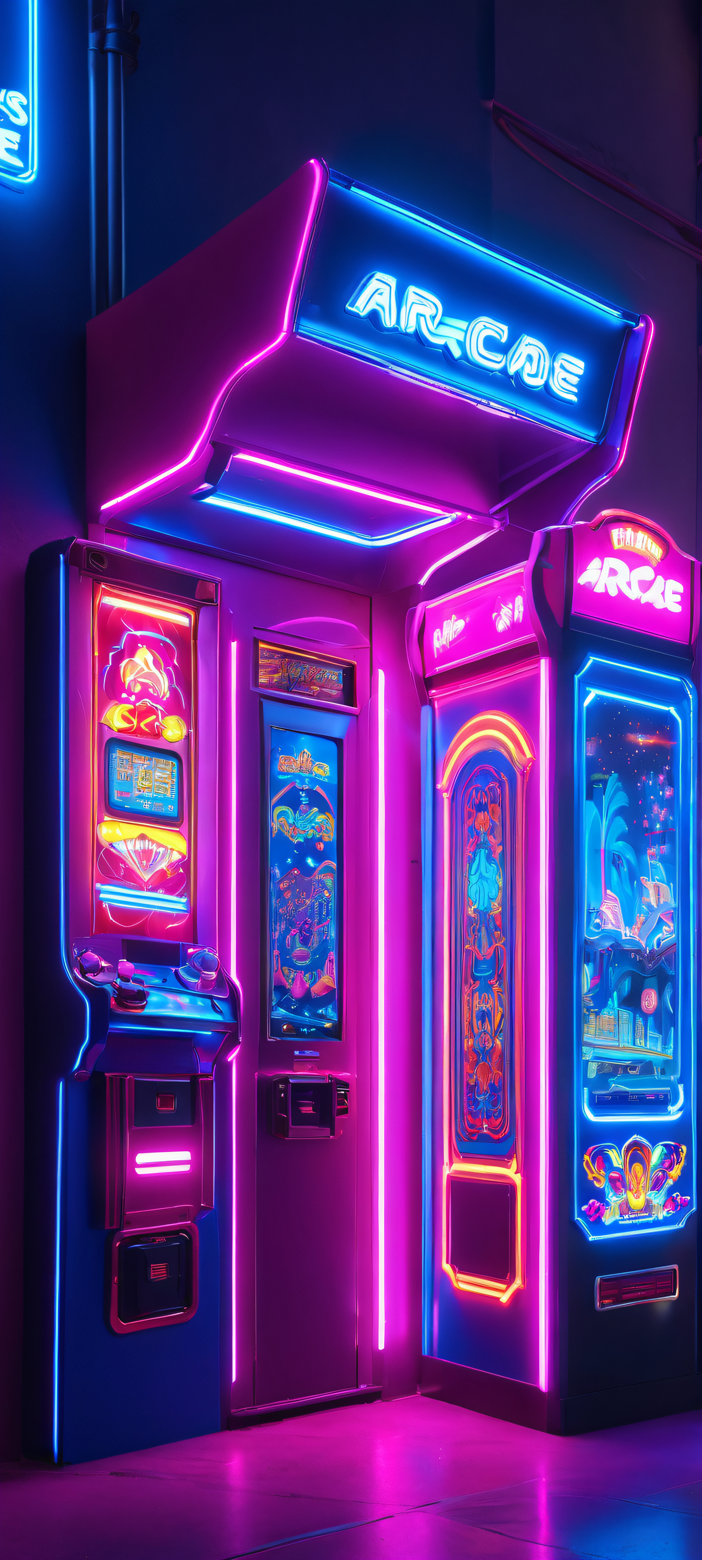 Glowing Neon Arcade QHD Phone Background Free Download: