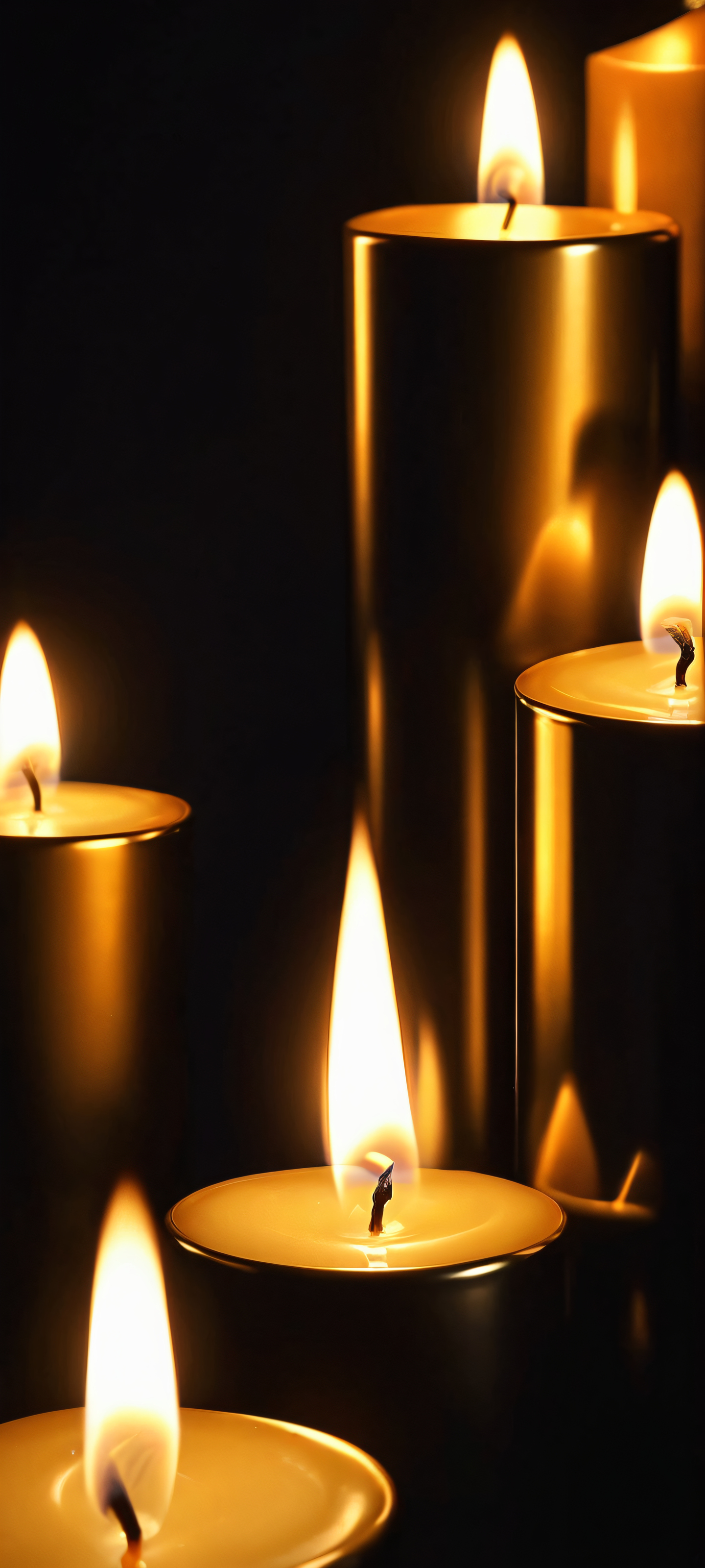 A beautiful wallpaper of warm gold candles in a dark room. Perfect for iPhone/Android home screens.