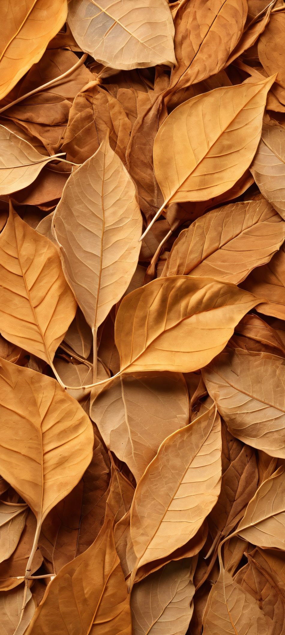 A serene and realistic mobile wallpaper featuring dried leaves on a softbox background, perfect for iPhone and Android home screens