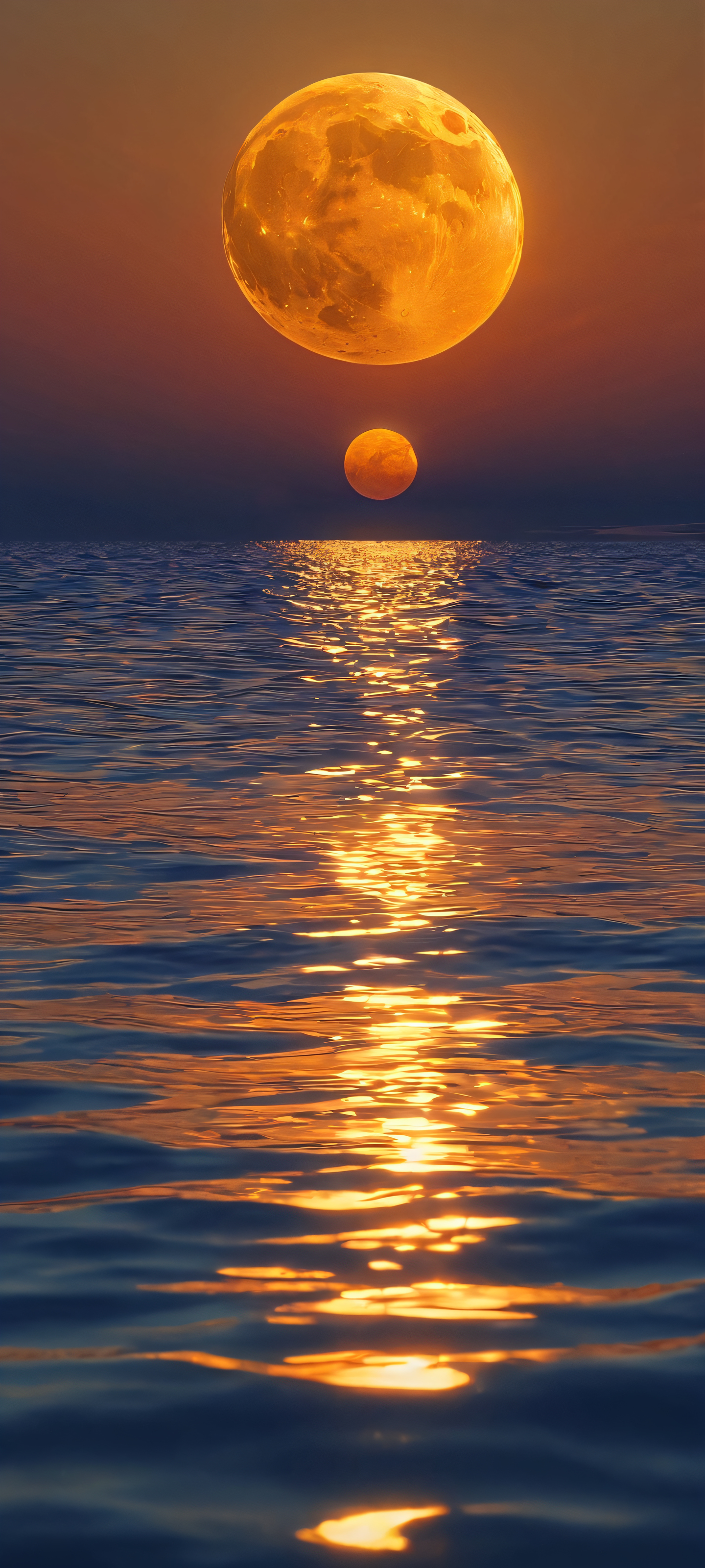 Indulge in the serene beauty of this breathtaking 2K QHD mobile wallpaper, expertly optimized for iPhone, Samsung Galaxy, and Android home screens. The crescent moon shines bright against a moody water backdrop, bathed in the warm golden hour light. Perfectly detailed and presented in highest quality, this masterpiece is sure to elevate your mobile phone experience.