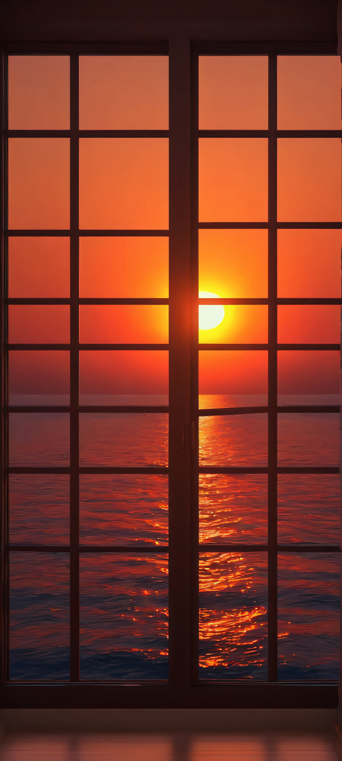 A stunning sunset mobile wallpaper featuring dark window frames and a soft glow, perfectly optimized for iPhone and Android devices.