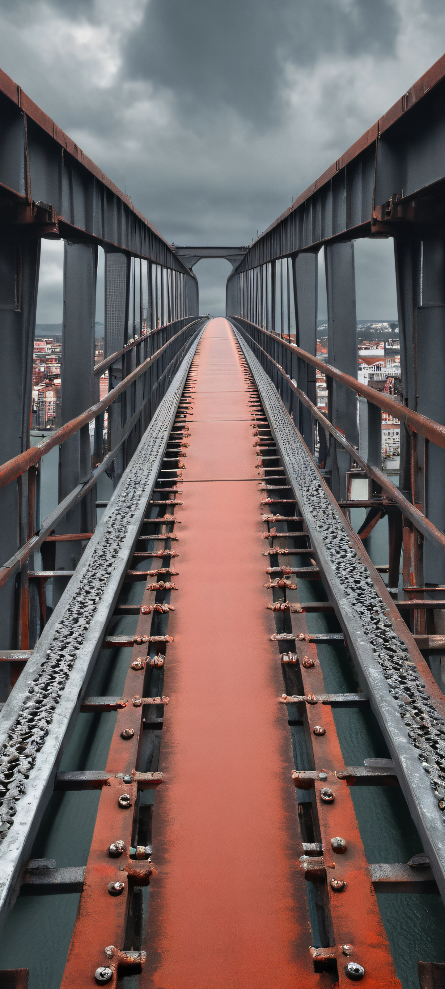 A majestic bridge at dusk, with rusty red tones and urban grey hues, perfectly optimized for iPhone, Samsung Galaxy, and Android home screens.