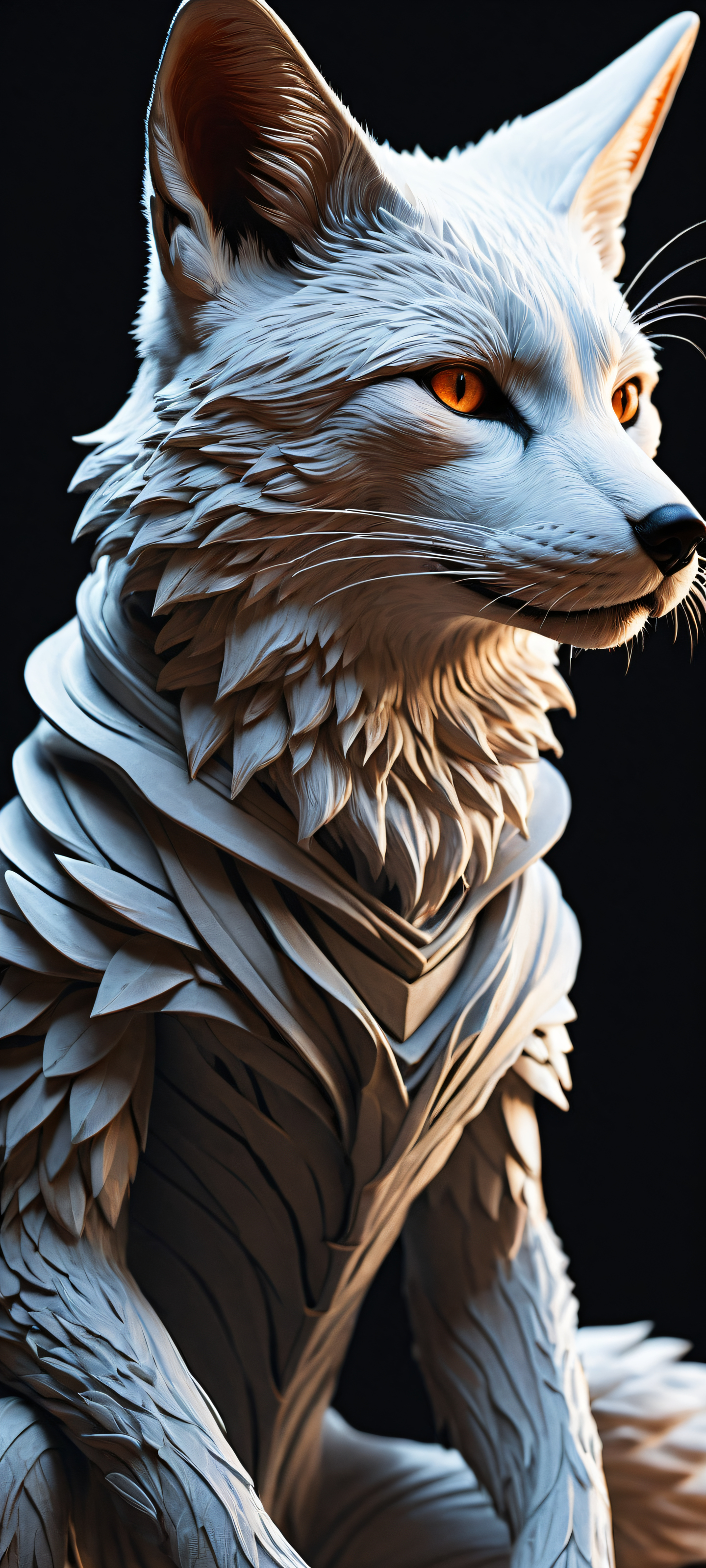 A breathtaking vertical portrait artwork of A lone, intricate anthro fox figure placed in the lower-middle with insane micro-details and extreme depth of field., Perfectly clean and empty top half with vast pure void, giving way to a richly detailed, immersive environment in the lower-half, teeming with fantastical elements and subtle texture., Award-winning digital art with stunning visual impact, showcasing a masterful blend of flat colors and textures, featuring pristine clarity and attention to detail., Dark mode aesthetic with deep perfect blacks, striking crisp contrast, and elegant luminescent accents that create an air of mystery and allure., A palette dominated by soft pastel hues, with touches of shimmering silver and a hint of fiery orange, evoking a sense of wonder and enchantment., elegant low-key lighting, deep perfect blacks, striking contrast, sleek dark mode aesthetic, luminescent accents, deep rich colors, portrait composition, centered subject in the lower middle, perfectly clean and smooth top half for UI, extreme depth of field blurred background, highly textured surfaces, intricate micro-details, physically based rendering, award-winning digital art, epic breathtaking scale, stunning visual impact, perfect composition, macOS wallpaper aesthetic, masterpiece, 2K QHD resolution, 9:20 aspect ratio.