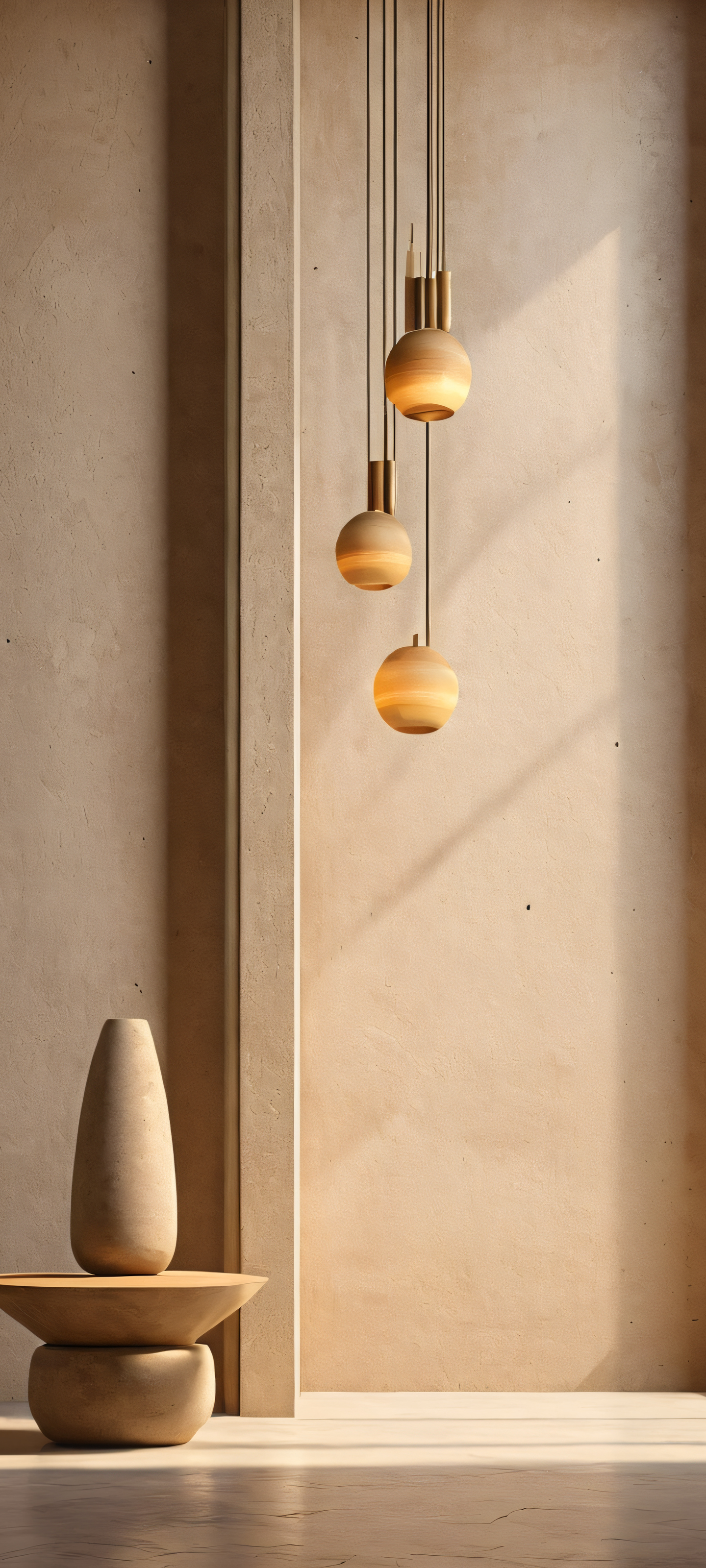 A stunning mobile wallpaper of Ishtar in a minimalist concrete interior setting, perfectly suited for iPhone and Android home screens.