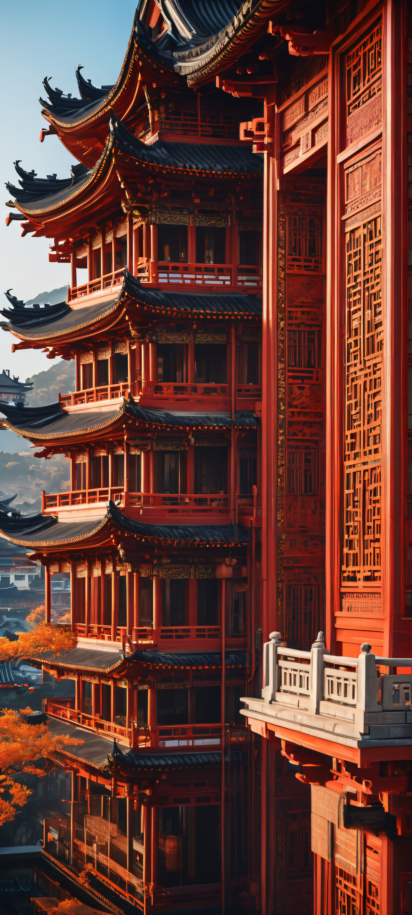 This breathtaking digital art is designed to perfectly complement your iPhone or Android device’s home screen. The stunning Asian architecture takes center stage in the lower-middle of the frame, with exquisite micro-details and depth of field that draws you in. The clean and empty top half provides a beautiful contrast, making this artwork a perfect fit for any mobile wallpaper.