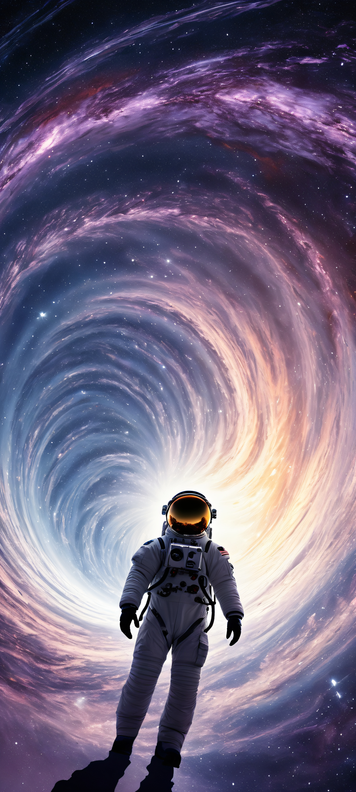 Experience the breathtaking visual impact of this stunning digital artwork, expertly crafted to be perfectly optimized for your iPhone, サムスンギャラクシー, またはAndroidのホーム画面. Let the astronaut’s visage cast an otherworldly glow as you gaze upon the swirling vortex of the black hole, set against a star-filled expanse evoking cosmic wonder.
