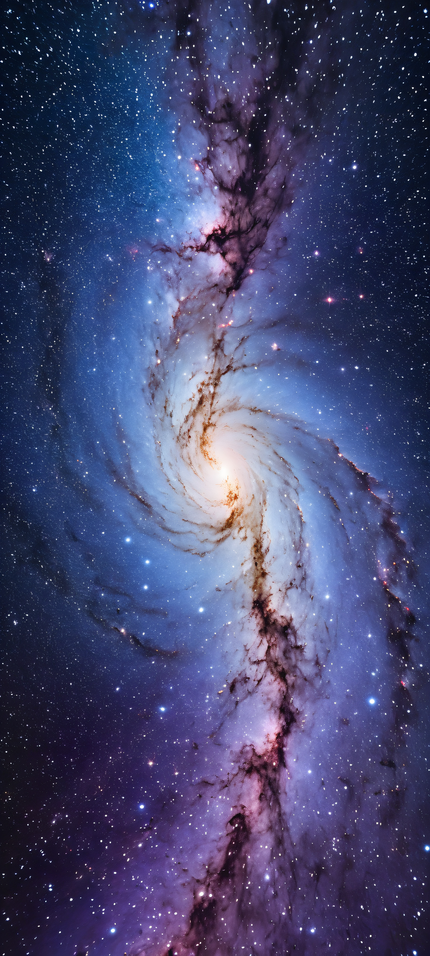 This breathtaking digital art piece is perfectly optimized for your iPhone, サムスンギャラクシー, と Android のホーム画面. The swirling galaxy gas and stars take center stage in the lower middle, gradually transitioning to a starry night sky at the bottom. The dominant palette of calming blues and purples creates an otherworldly ambiance, while the shimmering stardust whites and silver hues add depth and dimension.