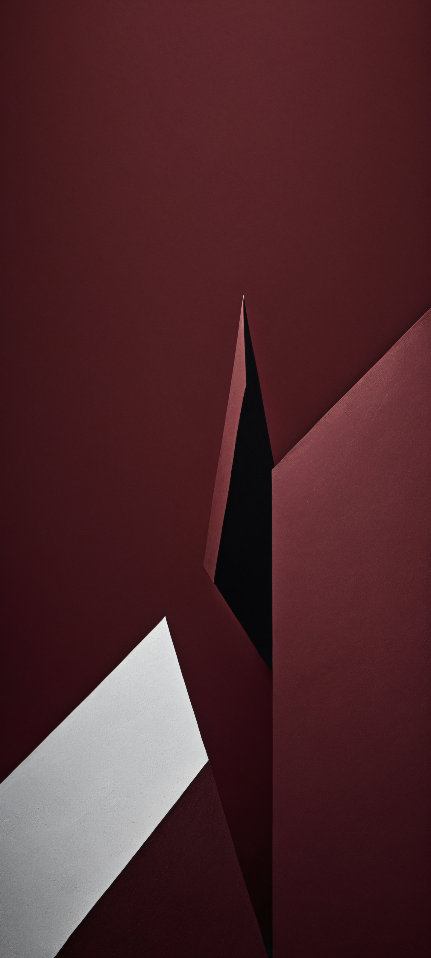 A breathtaking vertical portrait artwork of A minimalist’s nightmare placed in the lower-middle with insane micro-details, Perfectly clean and empty top half with vast pure void and a maroon-colored background filling the bottom half, Award-winning digital art, stunning visual impact, and pristine clarity, Deep blacks, striking contrast, and elegant luminescent accents in Dark Mode aesthetic, Dominant maroon color palette with crisp white accents, elegant low-key lighting, deep perfect blacks, striking contrast, sleek dark mode aesthetic, luminescent accents, deep rich colors, portrait composition, centered subject in the lower middle, perfectly clean and smooth top half for UI, extreme depth of field blurred background, highly textured surfaces, intricate micro-details, physically based rendering, award-winning digital art, epic breathtaking scale, stunning visual impact, perfect composition, macOS wallpaper aesthetic, masterpiece, 2K QHD resolution, 9:20 aspect ratio.
