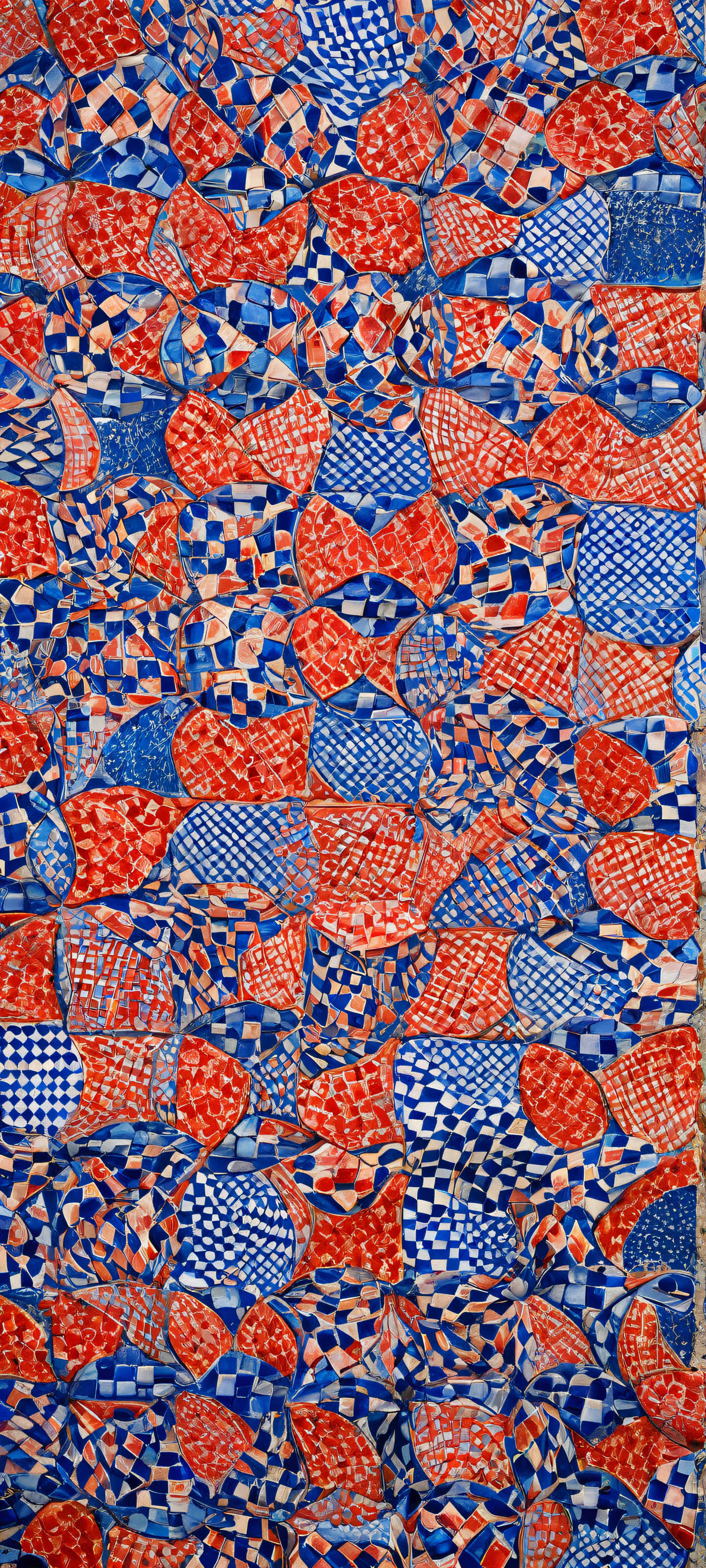 A breathtaking vertical portrait artwork of Overlapping red and blue checkered plates, carefully arranged in the lower-middle, intricate micro-details of ceramic shards, some edges lifting slightly, casting thin shadows., Perfectly clean and empty top half, vast pure void, subtle horizontal streaks like wind dragging pigment across the surface, muted background., Sculptural and abstract digital art, award-winning precision, with pristine clarity and striking visual impact., Deep dark mode aesthetic, perfect blacks, crisp contrast, and elegant luminescent accents. AVOID cinematic lighting., #660000, #00FFFF, elegant low-key lighting, deep perfect blacks, striking contrast, sleek dark mode aesthetic, luminescent accents, deep rich colors, portrait composition, centered subject in the lower middle, perfectly clean and smooth top half for UI, extreme depth of field blurred background, highly textured surfaces, intricate micro-details, physically based rendering, award-winning digital art, epic breathtaking scale, stunning visual impact, perfect composition, macOS wallpaper aesthetic, masterpiece, 2K QHD resolution, 9:20 aspect ratio.
