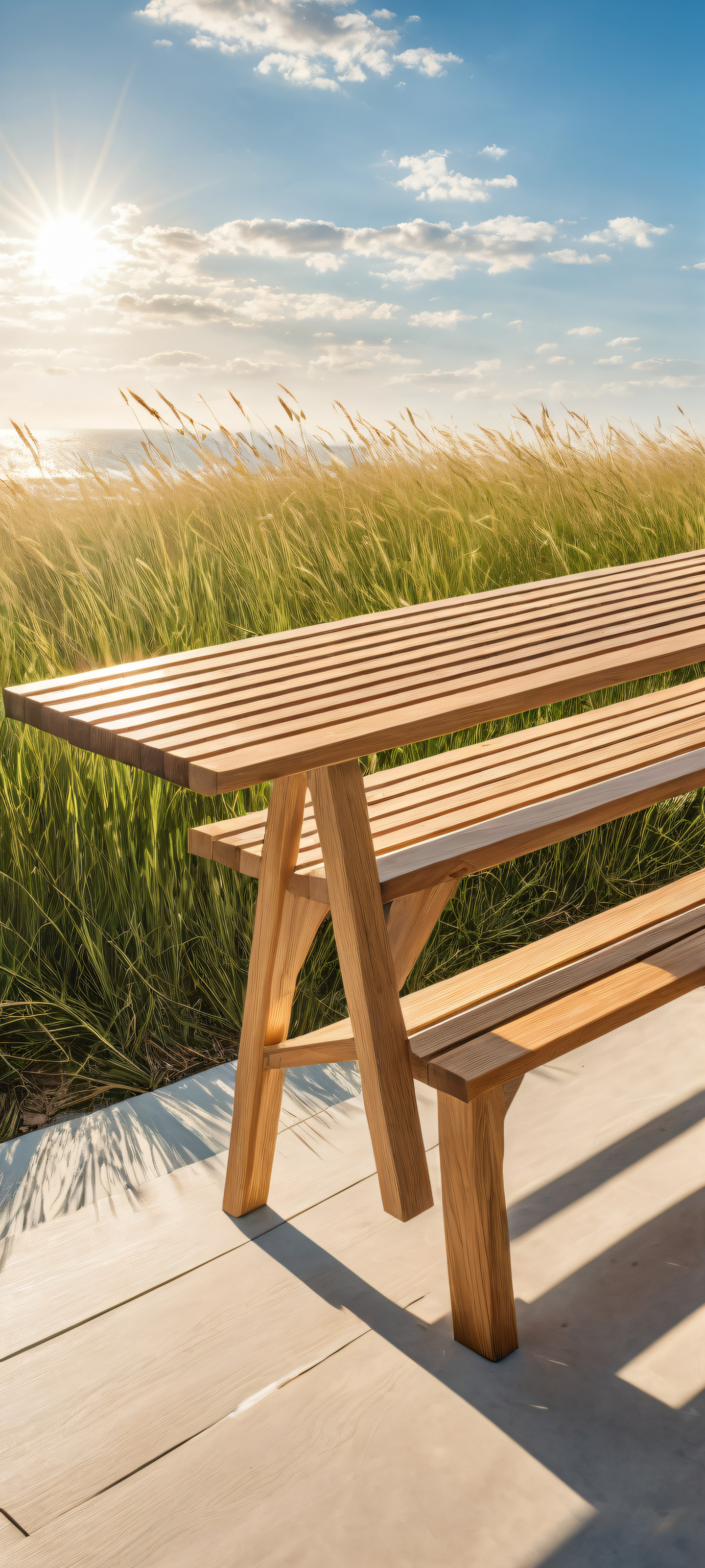 A breathtaking vertical portrait artwork of A serene bench placed in the lower-middle with intricate micro-details of wooden slats and subtle grass texture., Perfectly clean and empty top half with vast pure void, slowly transitioning to a vast blue sky filled with puffy clouds, creating a sense of depth and horizon., Award-winning digital art, 原始的な透明度, showcasing a mastery of 8k resolution and a perfect balance between texture and scale., Ethereal sunlight casting a warm glow, softly illuminating the entire scene with subtle ray-traced reflections on the wooden bench and grass., Dominant color palette featuring soft blues (#87CEEB) and creamy whites (#F5F5DC), accented by gentle green hues (#8BC34A) from the lush grass., ethereal lighting, radiant, brilliant colors, ray traced reflections, 原始的な透明度, portrait composition, centered subject in the lower middle, perfectly clean and smooth top half for UI, extreme depth of field blurred background, highly textured surfaces, intricate micro-details, physically based rendering, award-winning digital art, epic breathtaking scale, stunning visual impact, perfect composition, macOS wallpaper aesthetic, masterpiece, 2K QHD resolution, 9:20 aspect ratio.