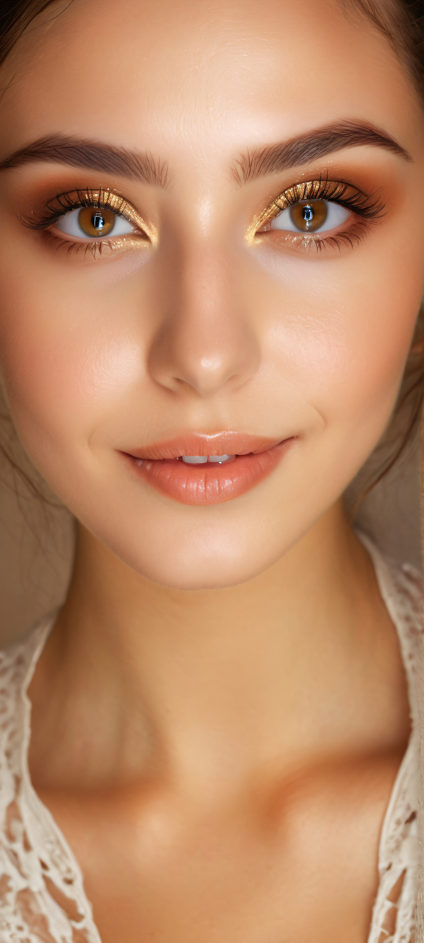 iPhone用に完全に最適化, サムスンギャラクシー, またはAndroidのホーム画面, this breathtaking portrait features intricate micro-details of her delicate eyelashes and radiant brown eyes. The ethereal lighting creates an inviting atmosphere that draws the viewer’s gaze, while the subtle use of ambient light accentuates the sparkle in her eyes.