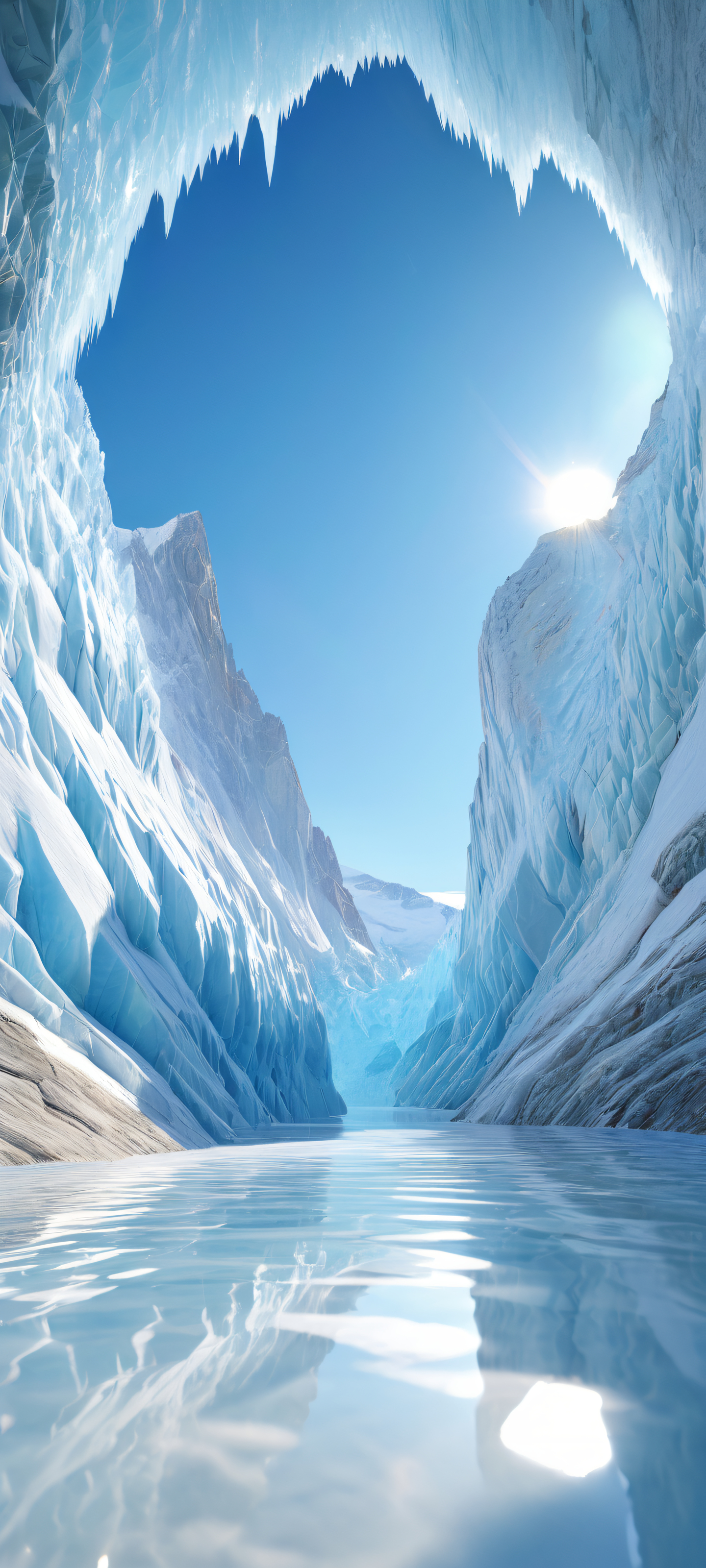iPhone用に完全に最適化, サムスンギャラクシー, と Android のホーム画面, this stunning digital art features a breathtaking vertical portrait of glaciers, 複雑な微細ディテールと幻想的な照明を備えた. The perfectly clean and empty top half creates a sense of depth, while the vast pure void and prairie stretching out into the distance add to the epic scale.
