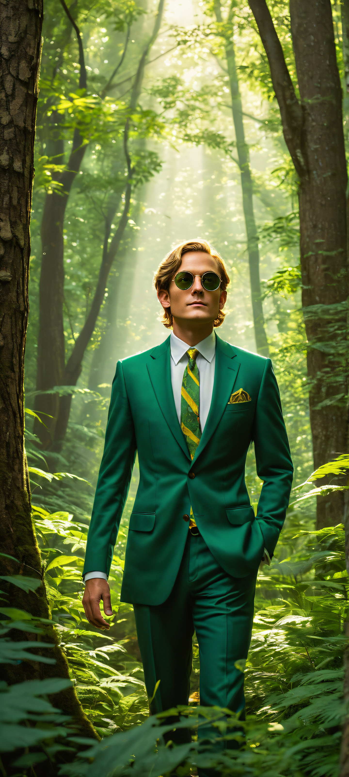This stunning digital artwork is perfectly optimized for your iPhone, サムスンギャラクシー, と Android のホーム画面. The breathtaking vertical portrait of Link showcases his sunglasses and pinstripe suit in insane micro-details, set against a vast pure void above. Below, the forest canopy teems with magical greenery and shady transactions, evoking whimsical wonder.