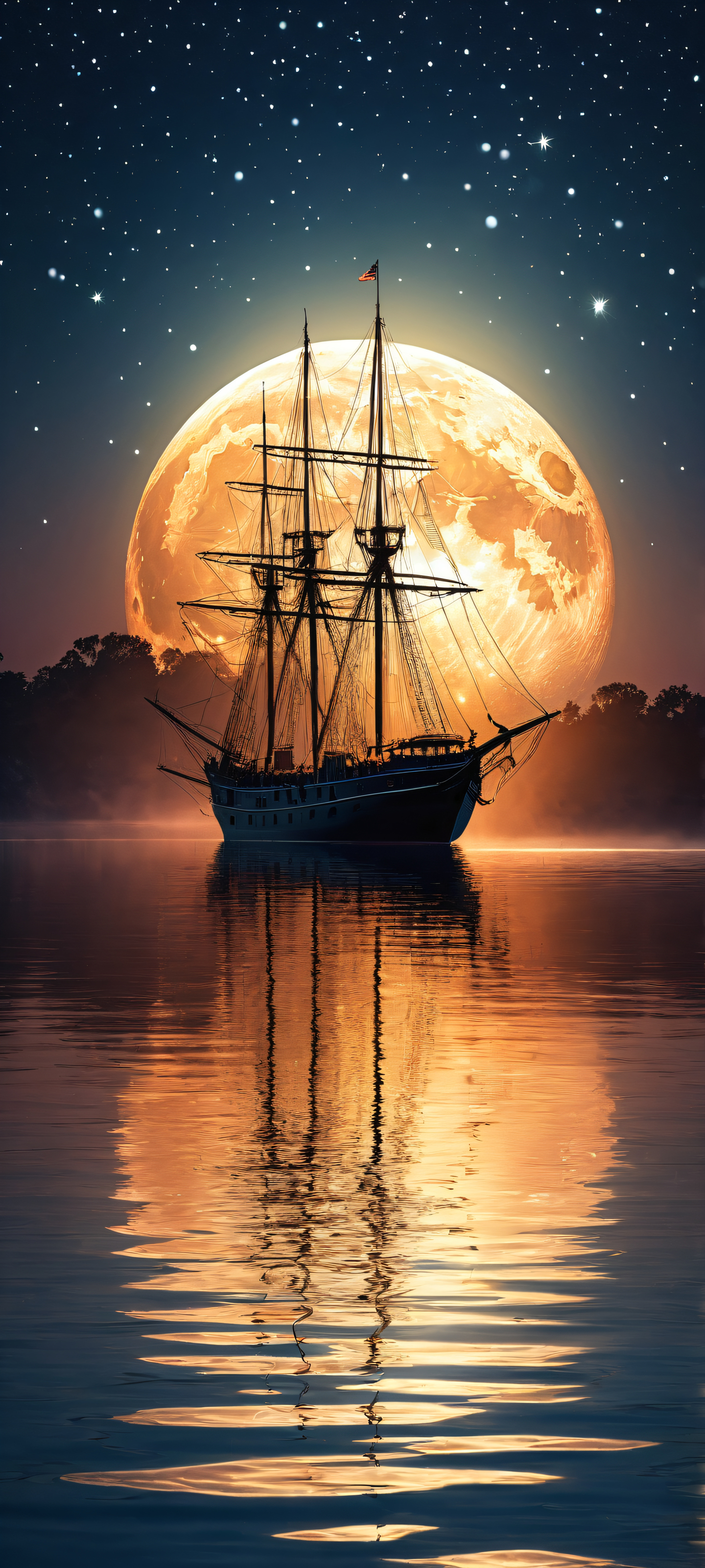 A breathtaking vertical portrait artwork of A majestic boat placed in the lower-middle, intricate micro-details of a statue’s reflection on the water’s surface., Perfectly clean and empty top half with vast pure void, allowing for seamless UI integration, while the lower half features a moonlit palace with stars shining bright in the night sky., Award-winning digital art, 原始的な透明度, featuring stunning visual impact with a 16:9 aspect ratio, perfect for an epic desktop wallpaper., Ethereal lighting, capturing the soft glow of the full moon casting a radiant beam onto the water’s surface, accompanied by subtle reflections and starry twinkles., #87CEEB #45B3FA #F7D2C4 #454545 #3498DB, ethereal lighting, radiant, brilliant colors, ray traced reflections, 原始的な透明度, portrait composition, centered subject in the lower middle, perfectly clean and smooth top half for UI, extreme depth of field blurred background, highly textured surfaces, intricate micro-details, physically based rendering, award-winning digital art, epic breathtaking scale, stunning visual impact, perfect composition, macOS wallpaper aesthetic, masterpiece, 2K QHD resolution, 9:20 aspect ratio.