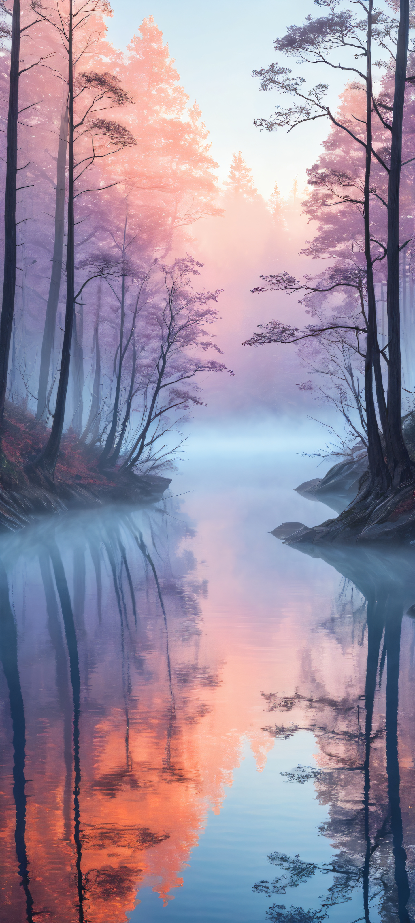 A breathtaking vertical portrait artwork of In the mystical forest of whispers, where ancient trees bear glowing runes like moonlit lanterns, a gentle dawn awakens the land. Softly shimmering mist veils the undulating hills as Samsung’s sleek silhouette emerges, its metallic curves blending with the morning light., portrait composition, centered subject in the lower middle, perfectly clean and smooth top half for UI, extreme depth of field blurred background, highly textured surfaces, intricate micro-details, physically based rendering, award-winning digital art, masterpiece, 2K QHD resolution, 9:20 aspect ratio